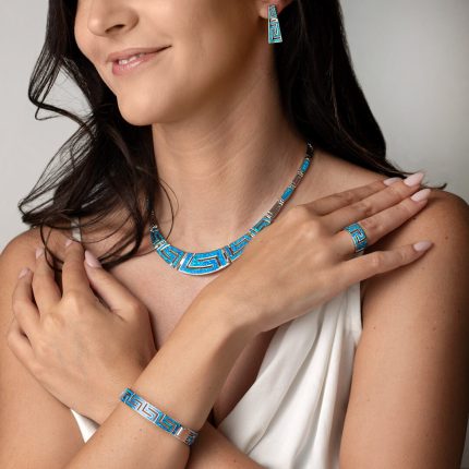Greca Bangle Bracelet with Blue Opal stone – 925 Sterling Silver