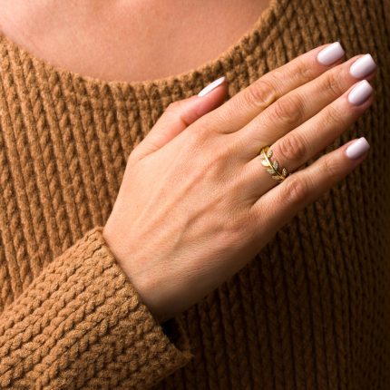Olive Leaf Branch Ring – 18K Solid Yellow Gold