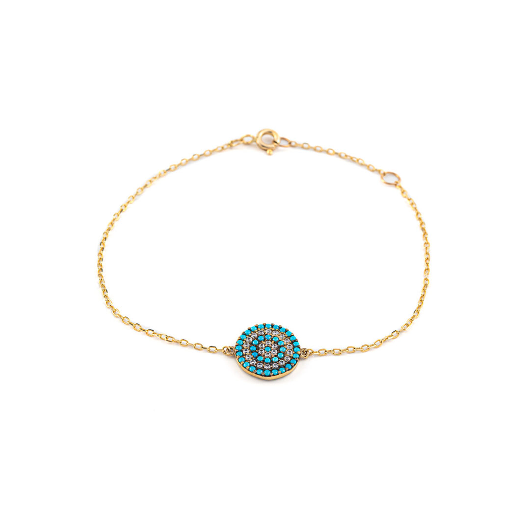 14K Gold Evil Eye Bracelet with Turquoise and Zircon