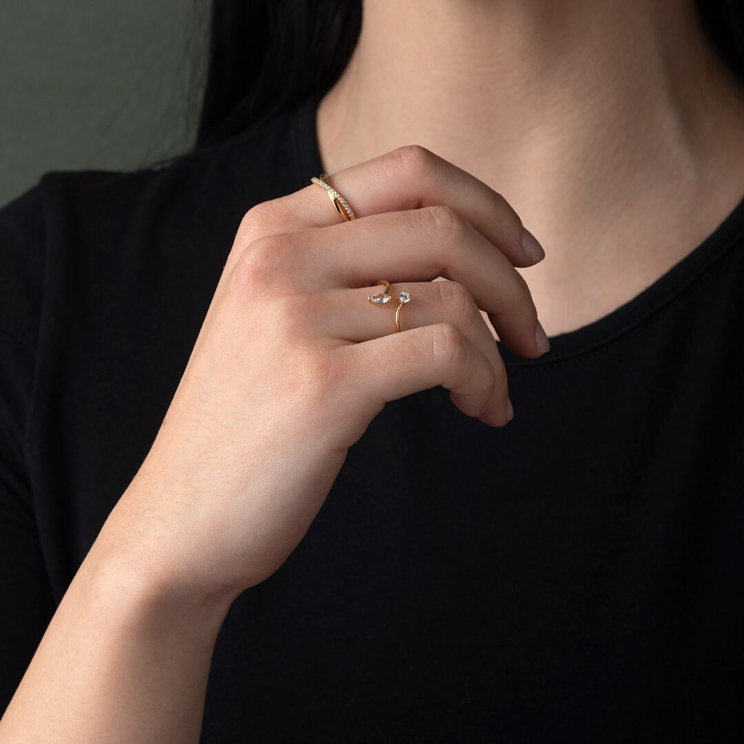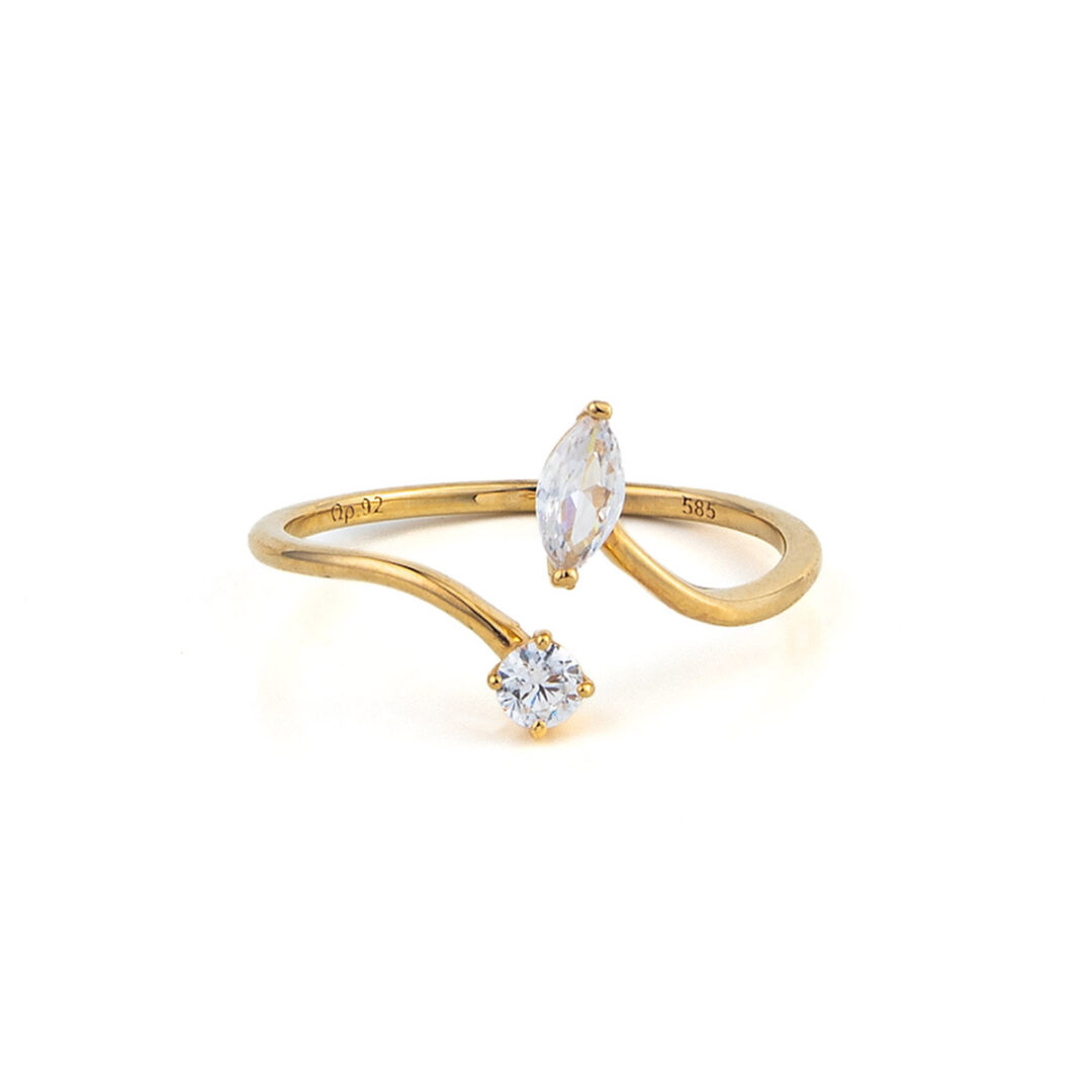 14K Yellow Gold Open Ring with Cubic Zirconia
