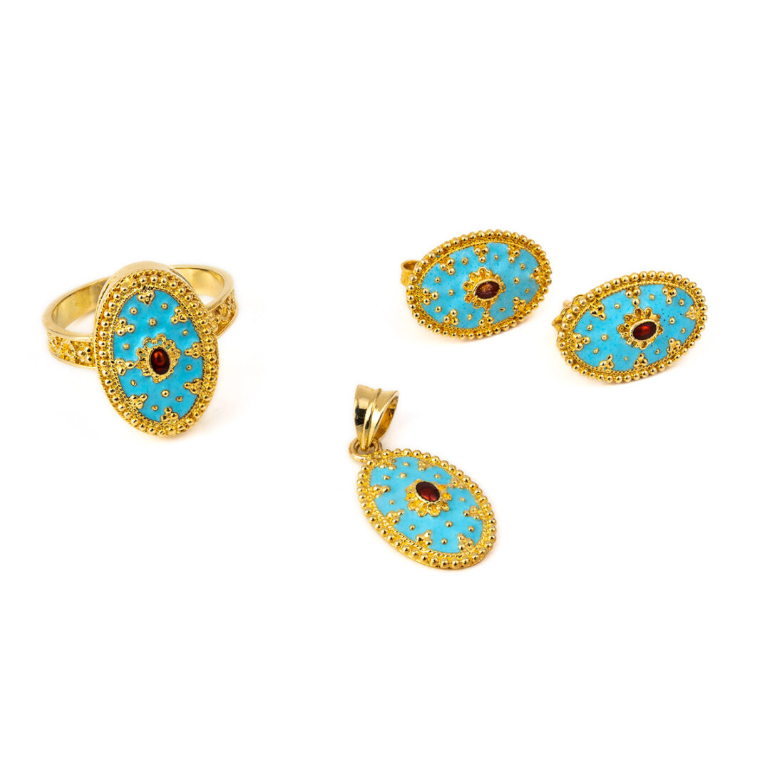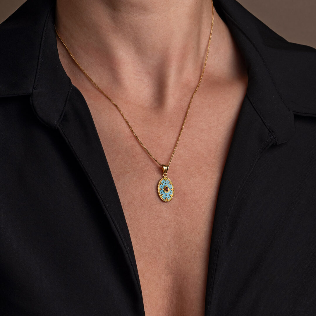 Byzantine pendant embellished with turquoise enamel and granules of precious metal.