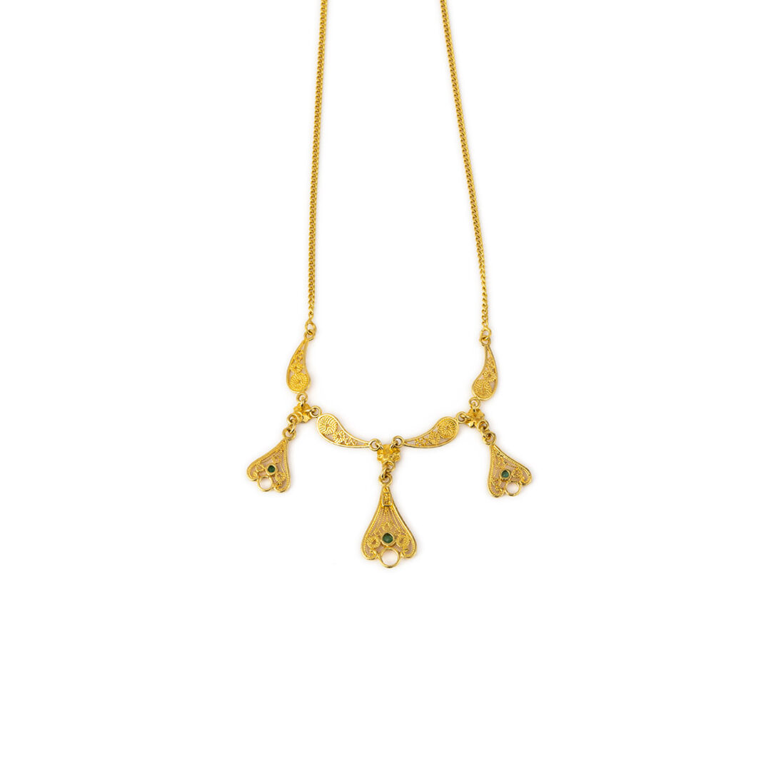 18K Gold Byzantine Filigree Emerald Necklace