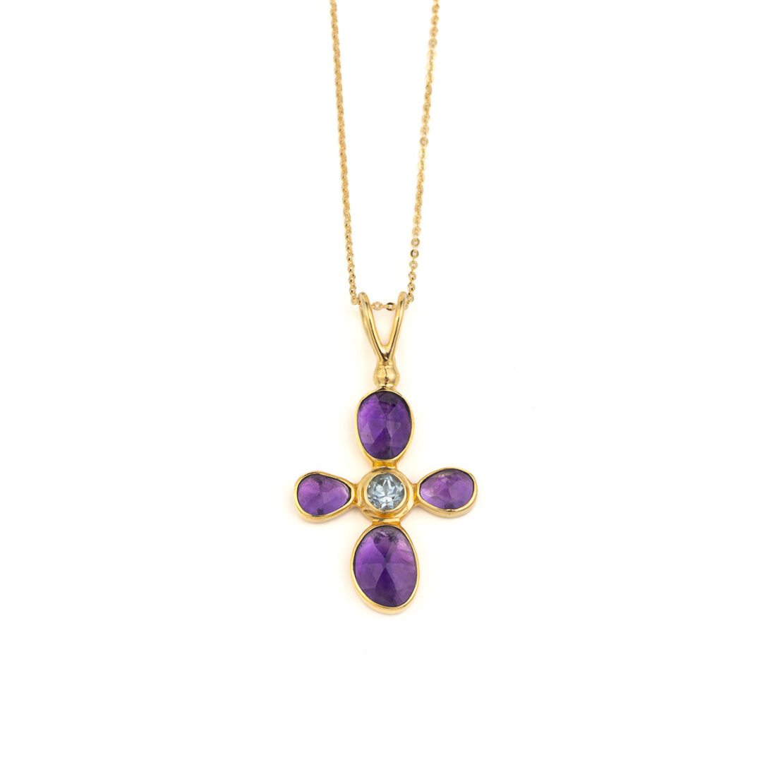925 Sterling Silver and Gold Plated Necklace with Amethyst