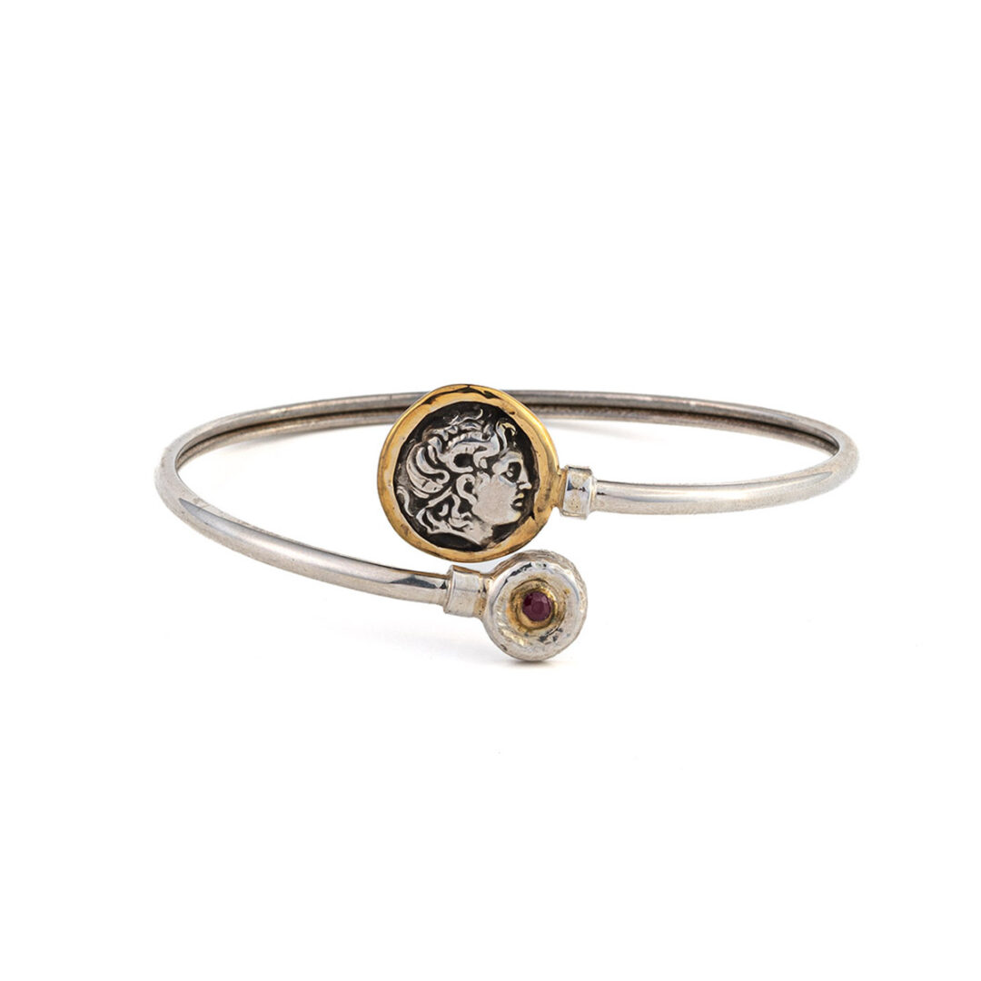 Alexander the Great Coin Bracelet Hinge Ruby Bracelet – 14K Gold and 925 Sterling Silver