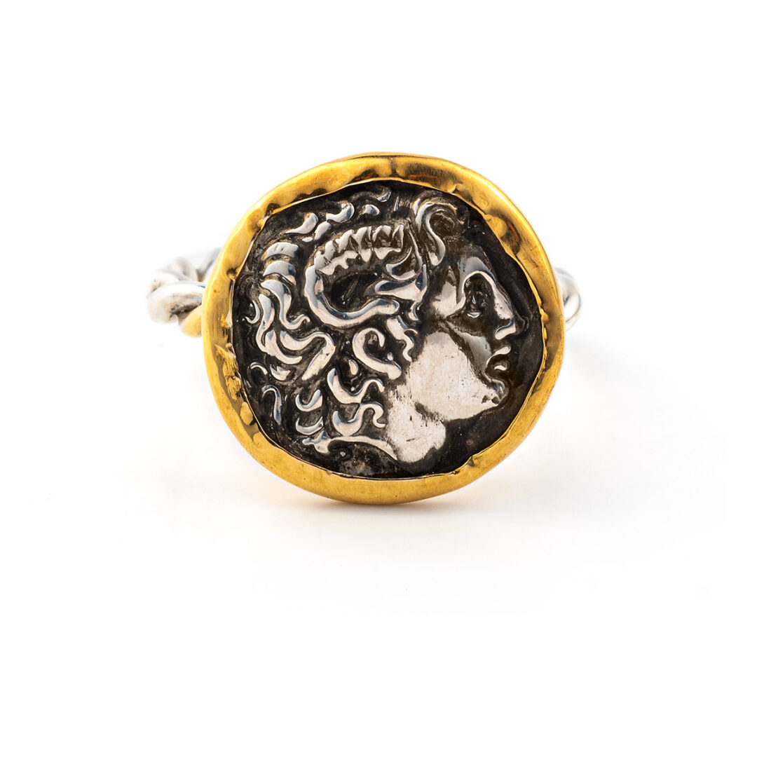 Alexander The Great Coin Ring – 14K Gold and 925 Sterling Silver