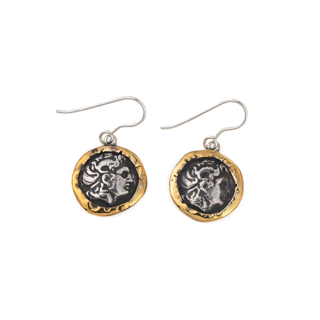 Α beautiful and timeless Coin pair of earrings inspired by the ancient Greek tetradrachm coin of Alexander the Great.