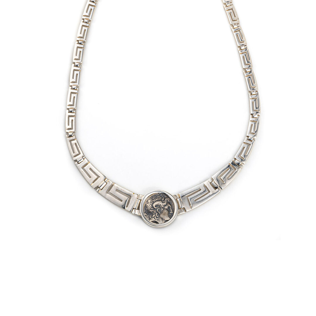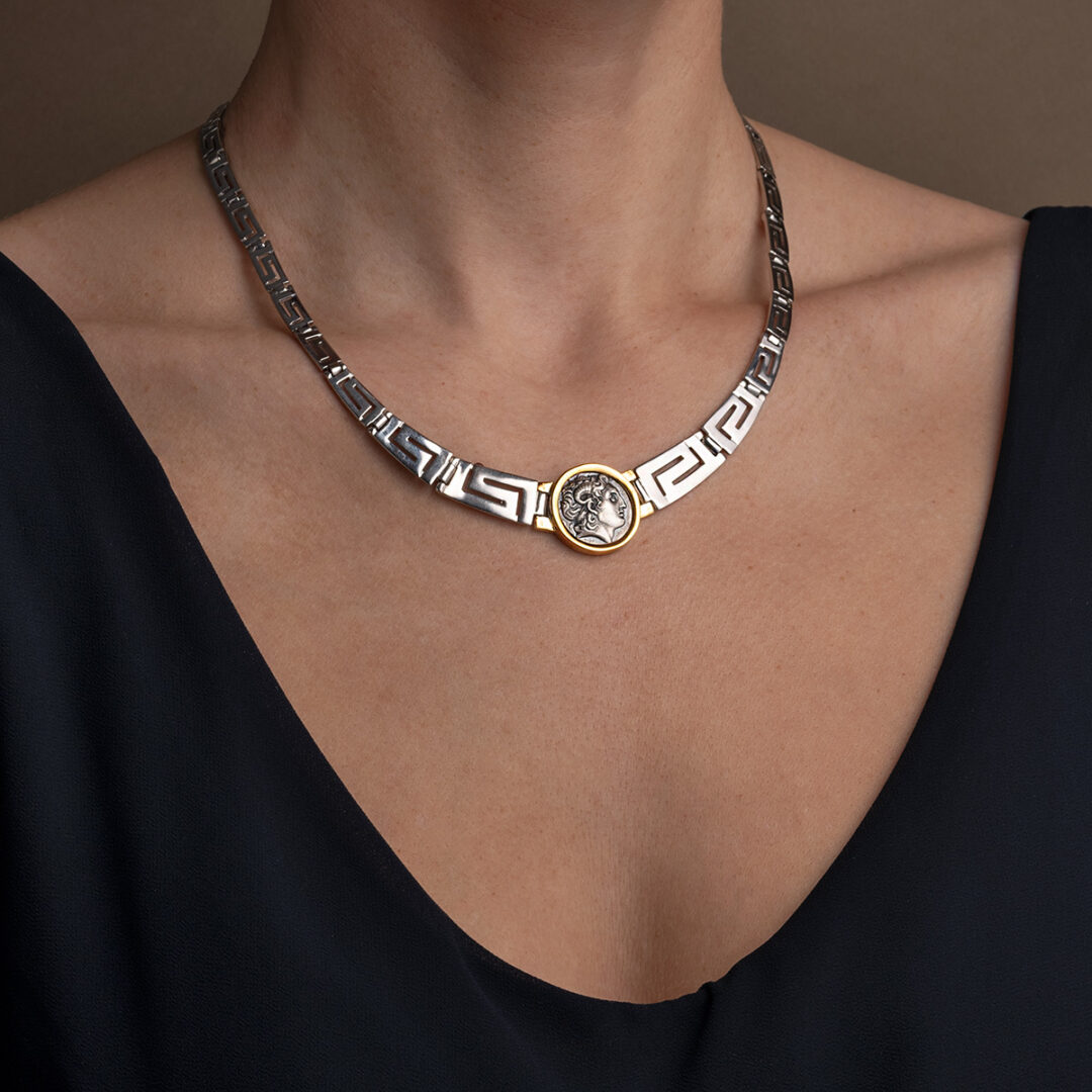 Handmade sterling silver coin necklace inspired by an ancient Greek Tetradrachm.