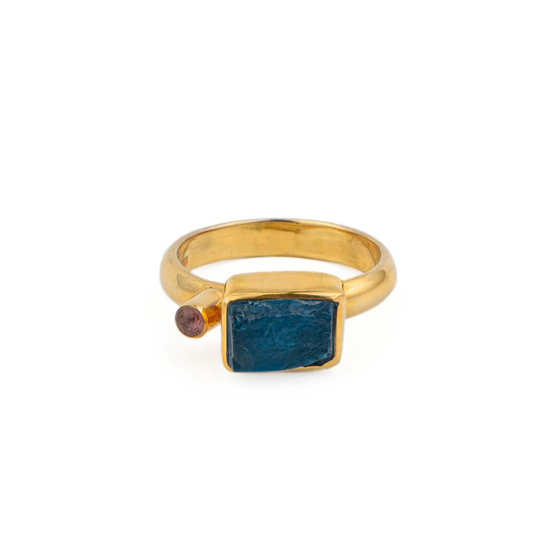 Apatite Square Ring – 925 Sterling Silver and Gold Plated