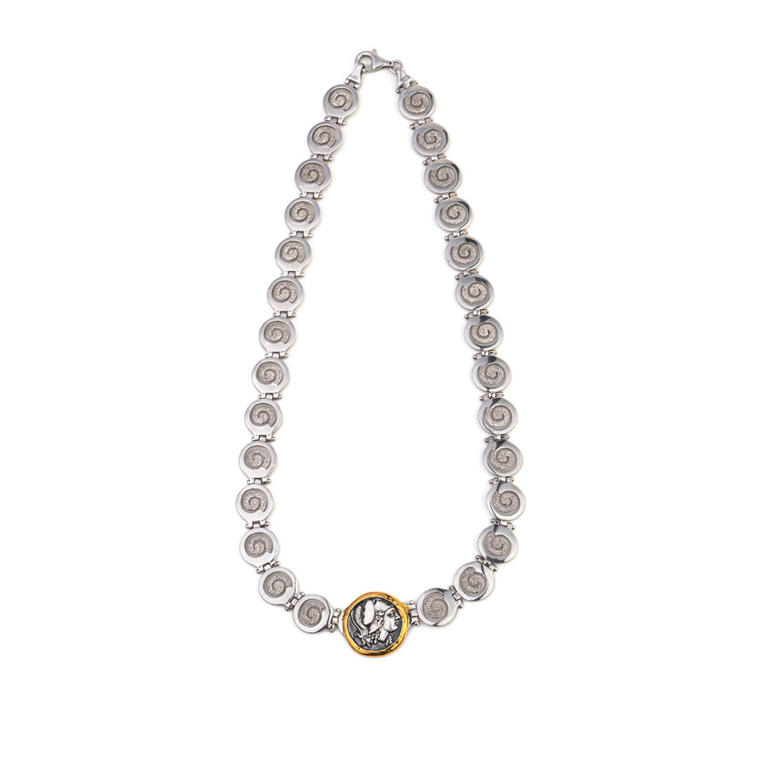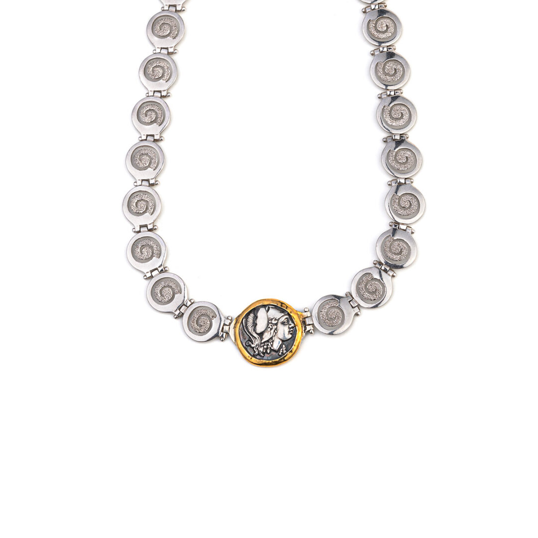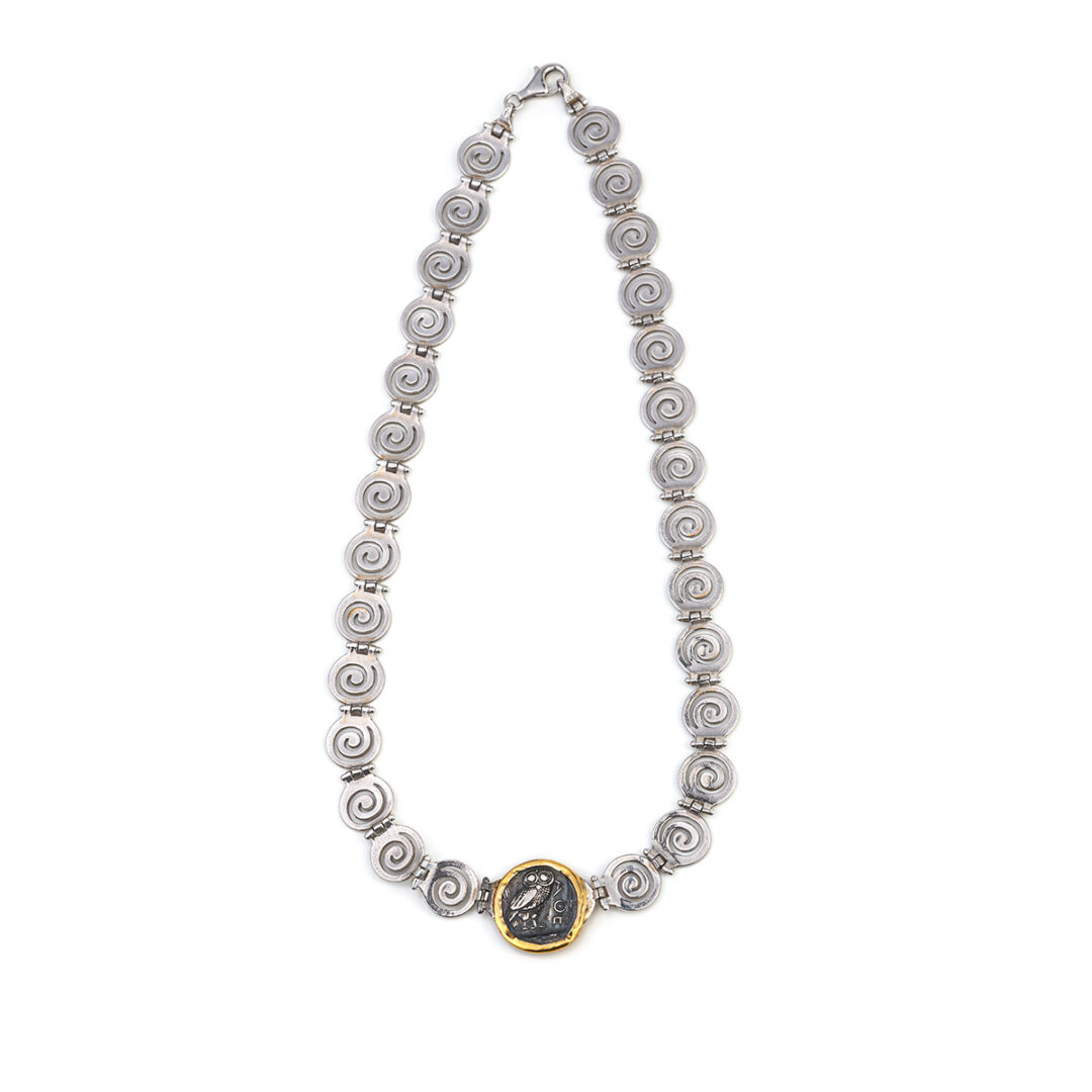 Athena Greek Coin Spiral Necklace – Sterling Silver and Gold