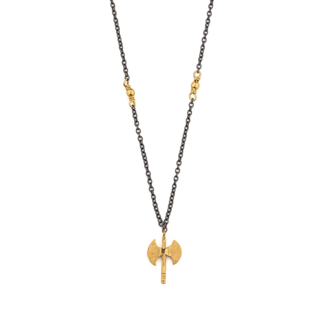 Axe Necklace in 925 Sterling Silver Oxidized and Gold Plated