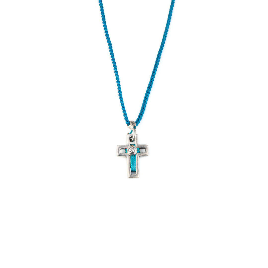 Babylonia Necklace Cross Blue Jean - 935 Sterling Silver