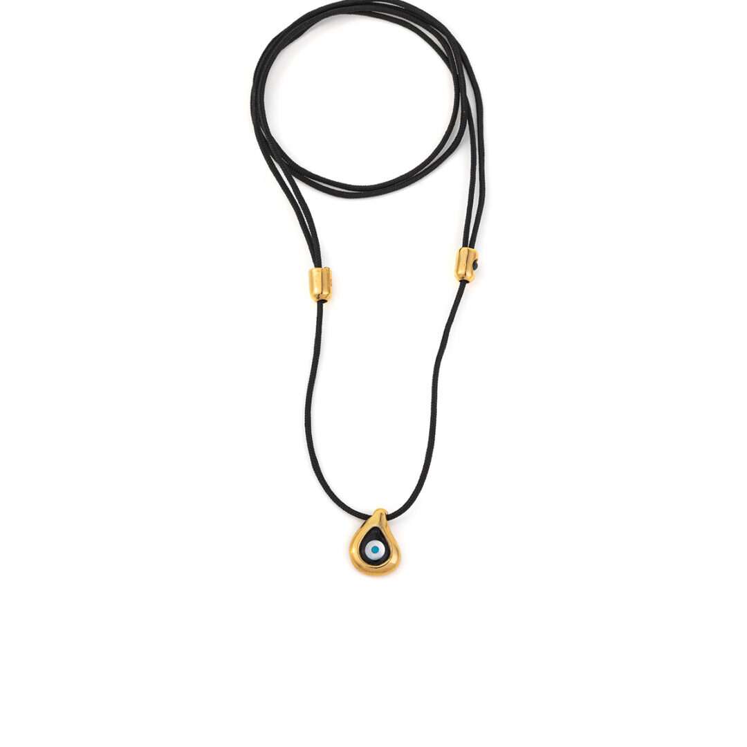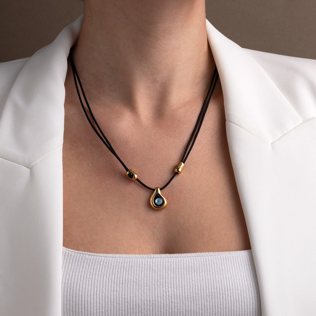 Black Cord Mati Necklace – Sterling Silver and Gold plated