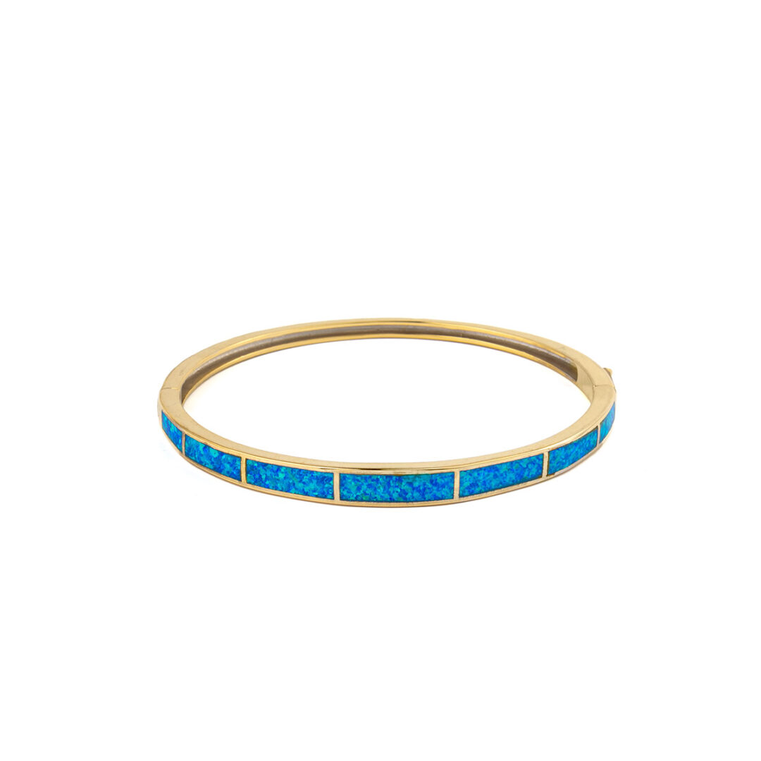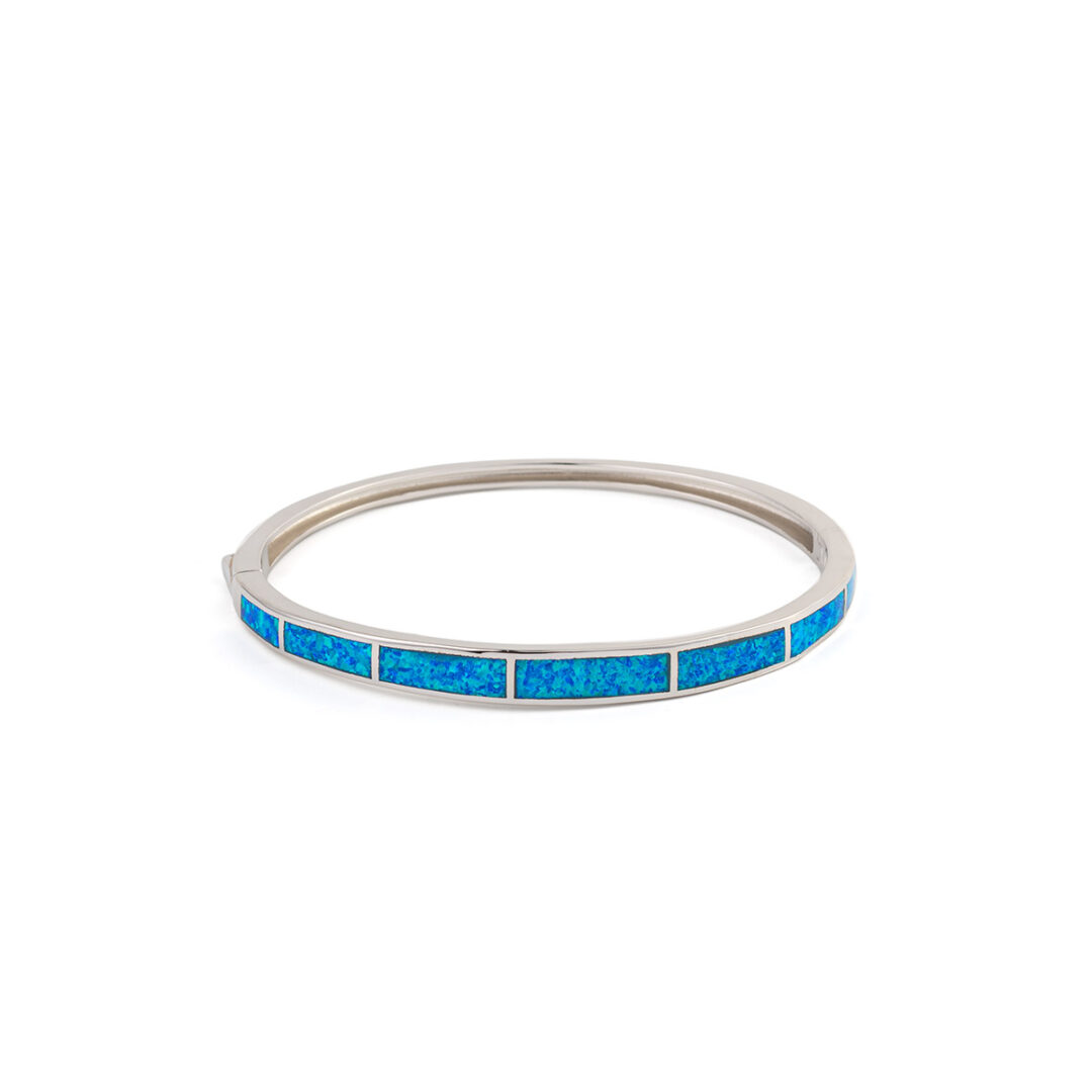 Blue Opal Bangle Bracelet – 925 Sterling Silver