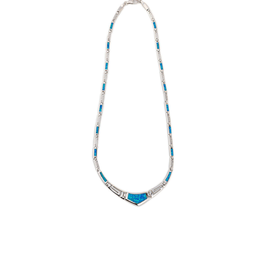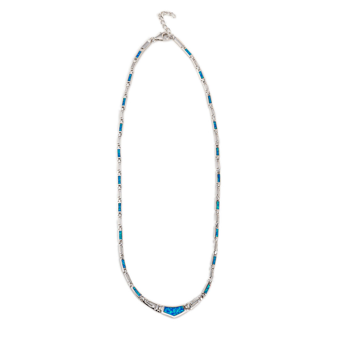 Blue Opal Greek Key Necklace – Sterling Silver