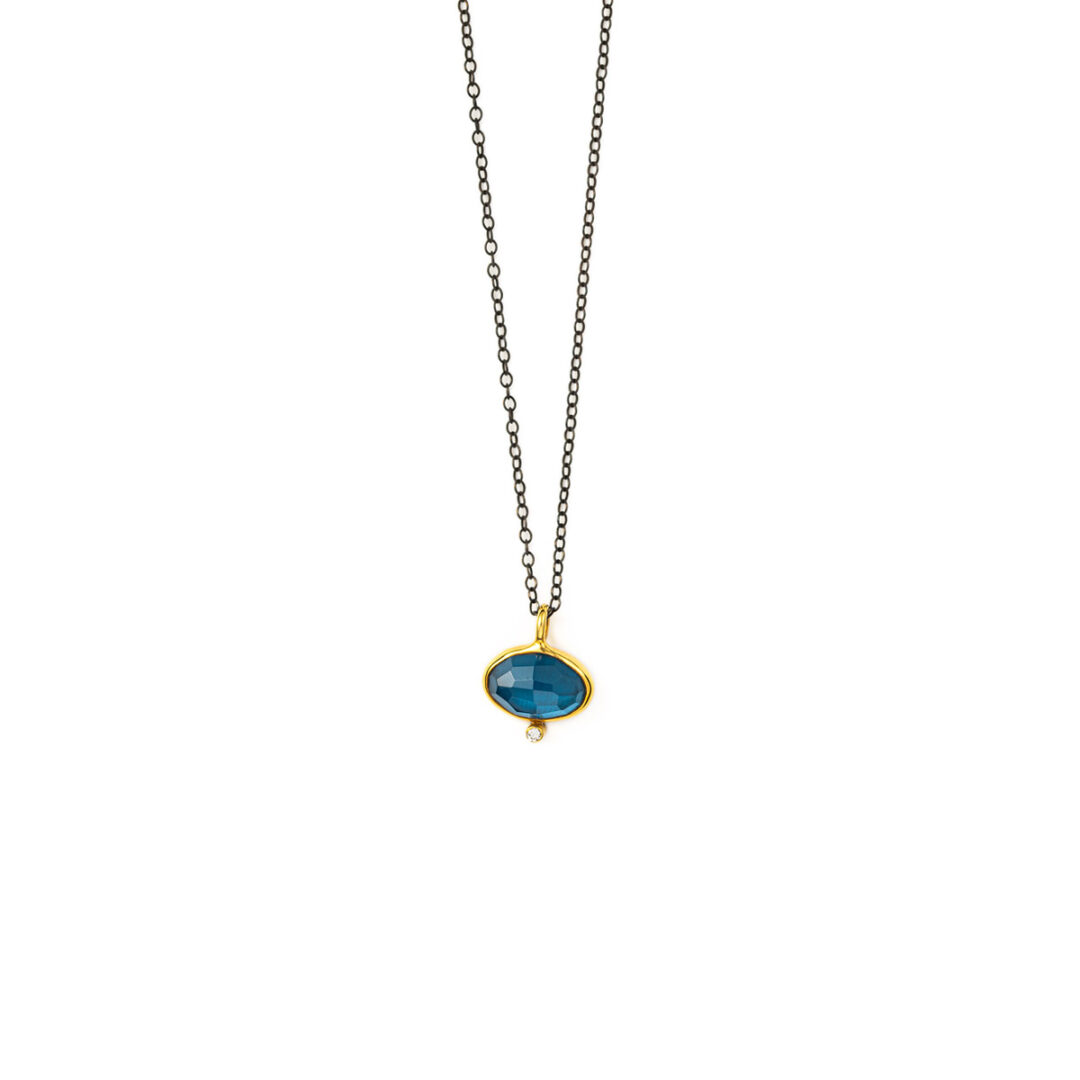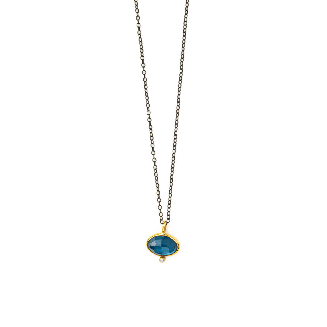 Blue Topaz Brilliant Necklace – 18K Gold and 925 Sterling Silver