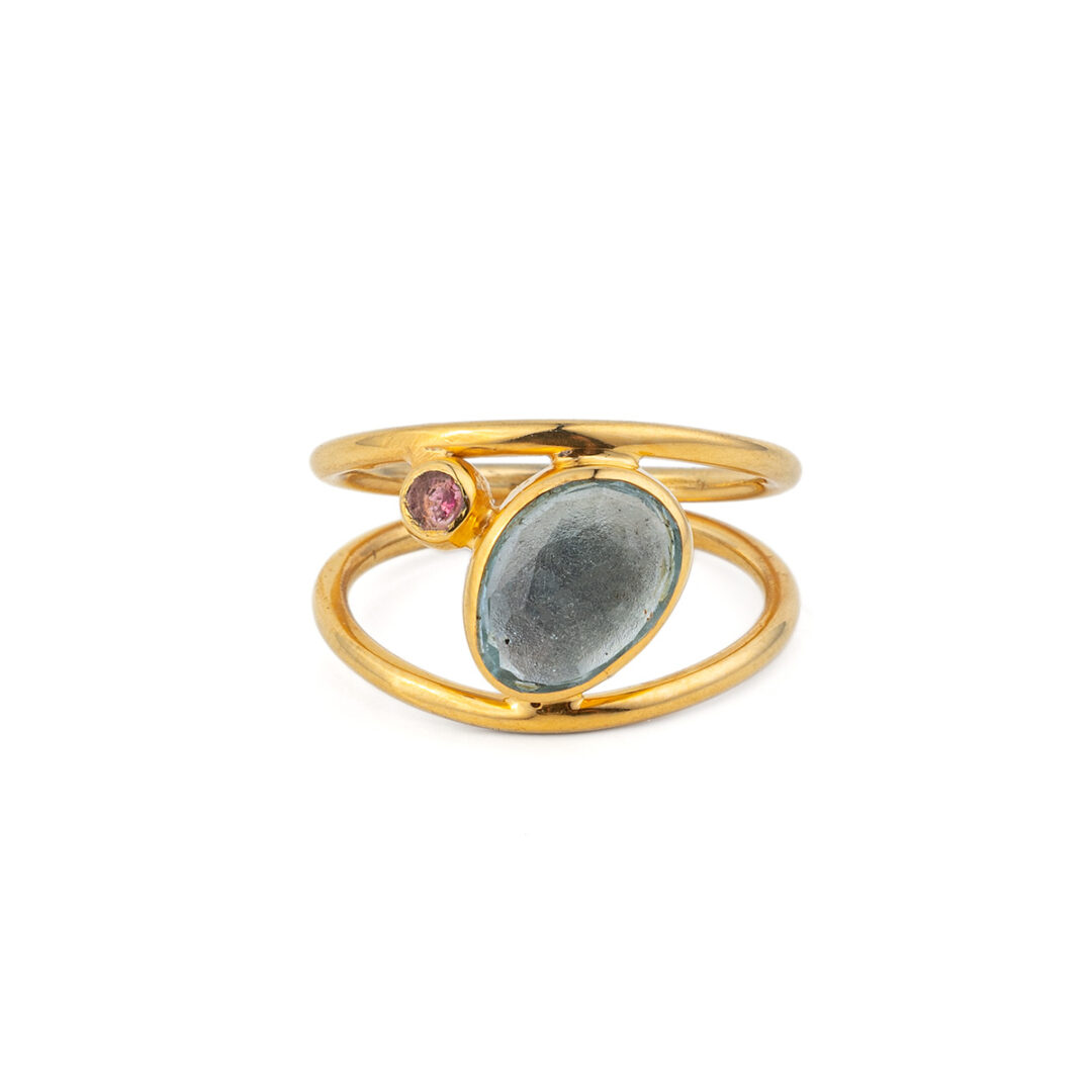 Blue Topaz Circle Ring – 925 Sterling Silver and Gold Plated