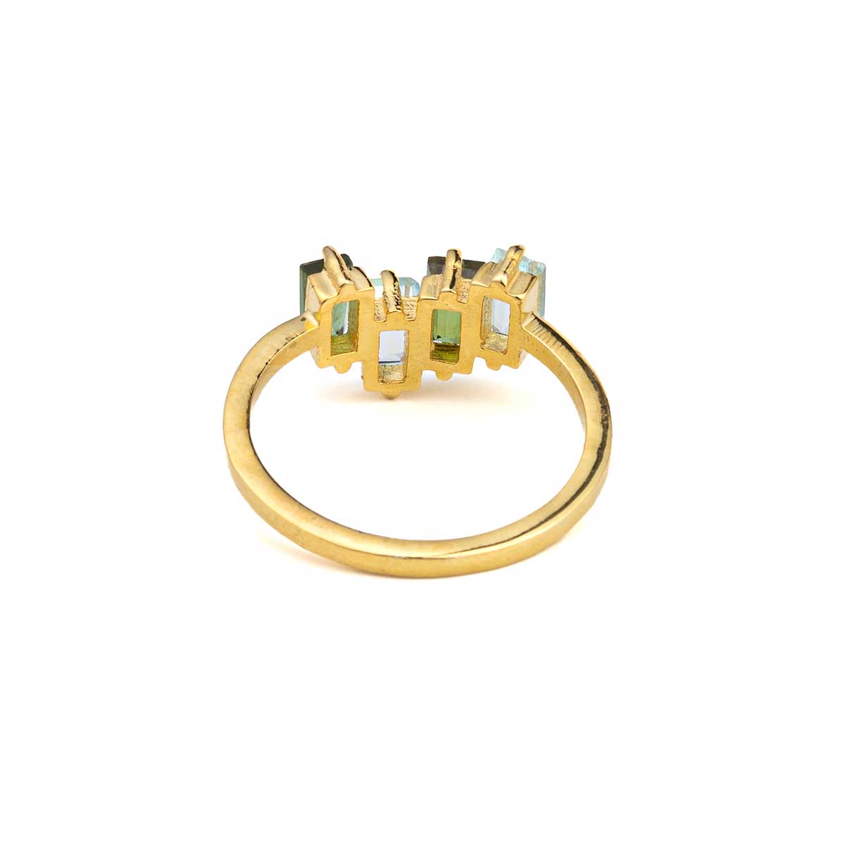 Blue Topaz Tourmaline Ring – 925 Sterling Silver and Gold Plated