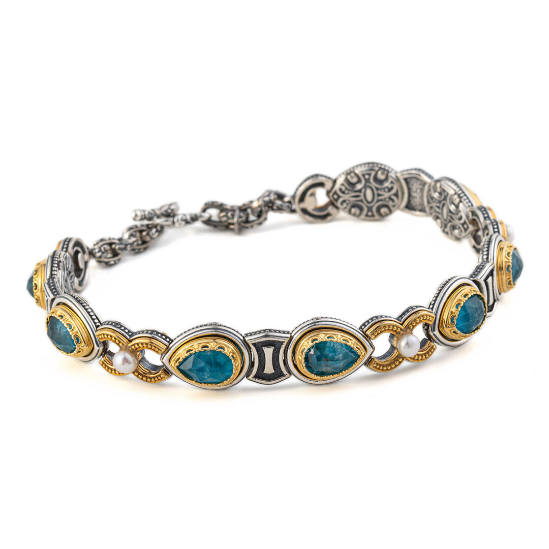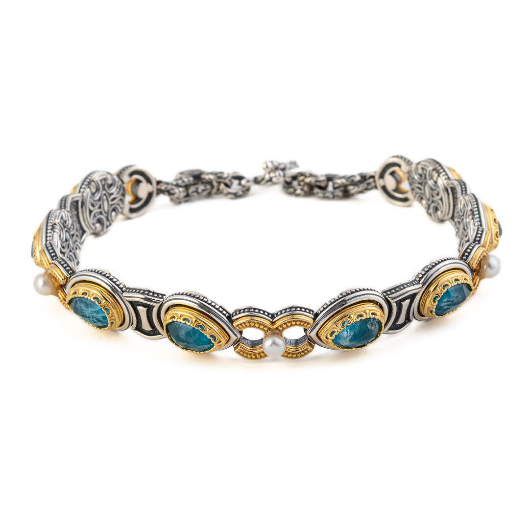 Byzantine Bracelet with Doublet Apatite and Natural Pearl Gemstone