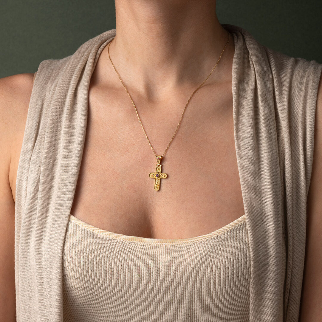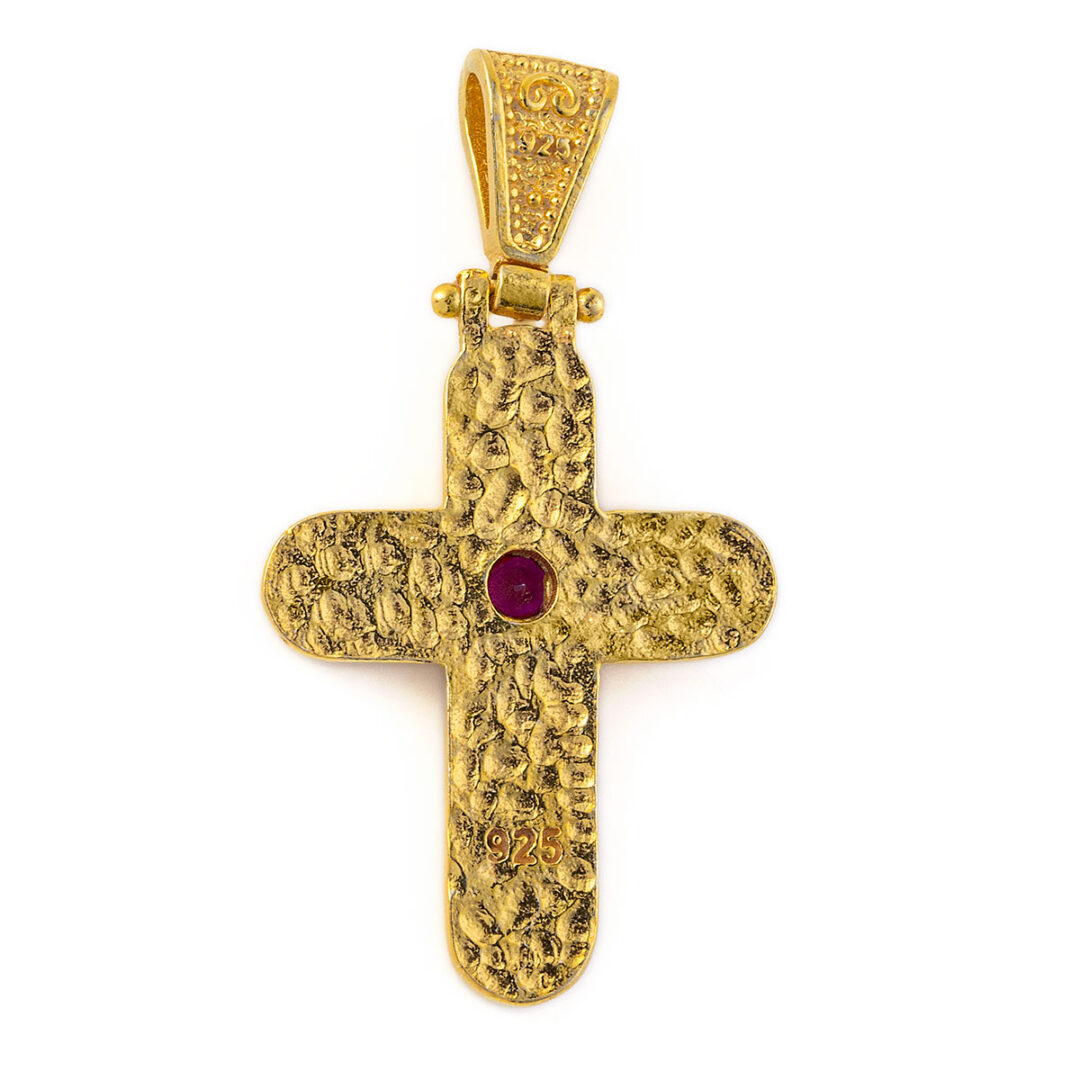 Byzantine Cross – 925 Sterling Silver Gold Plated with Zircon