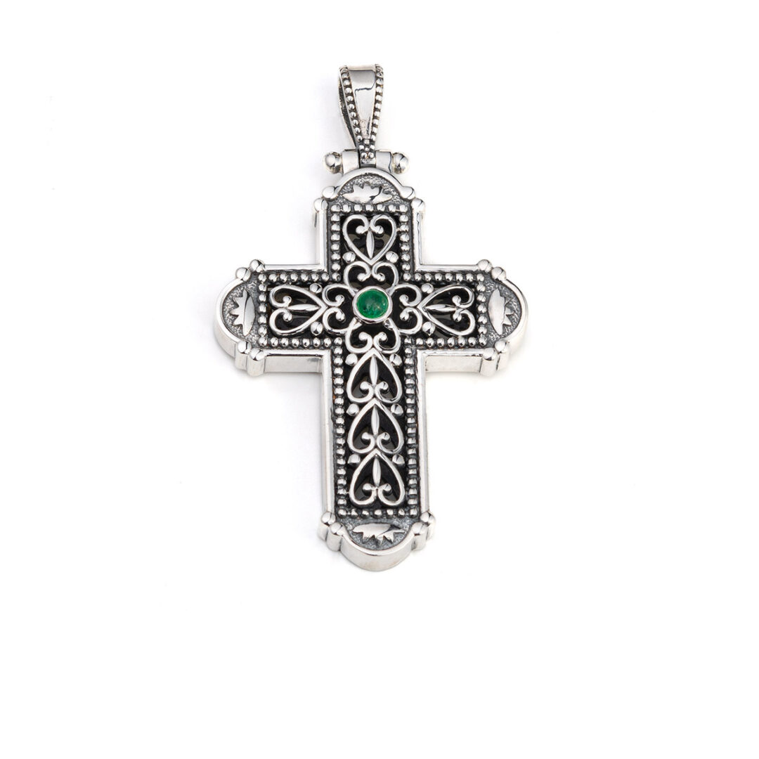Byzantine Cross Pendant Silver 925 with a Precious Stone