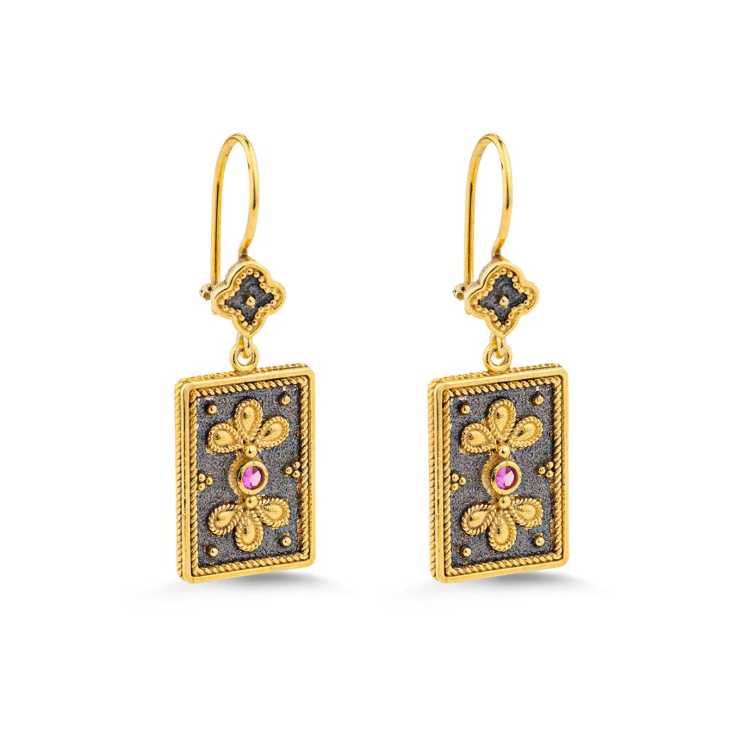 Byzantine Floral Rectangle Earrings