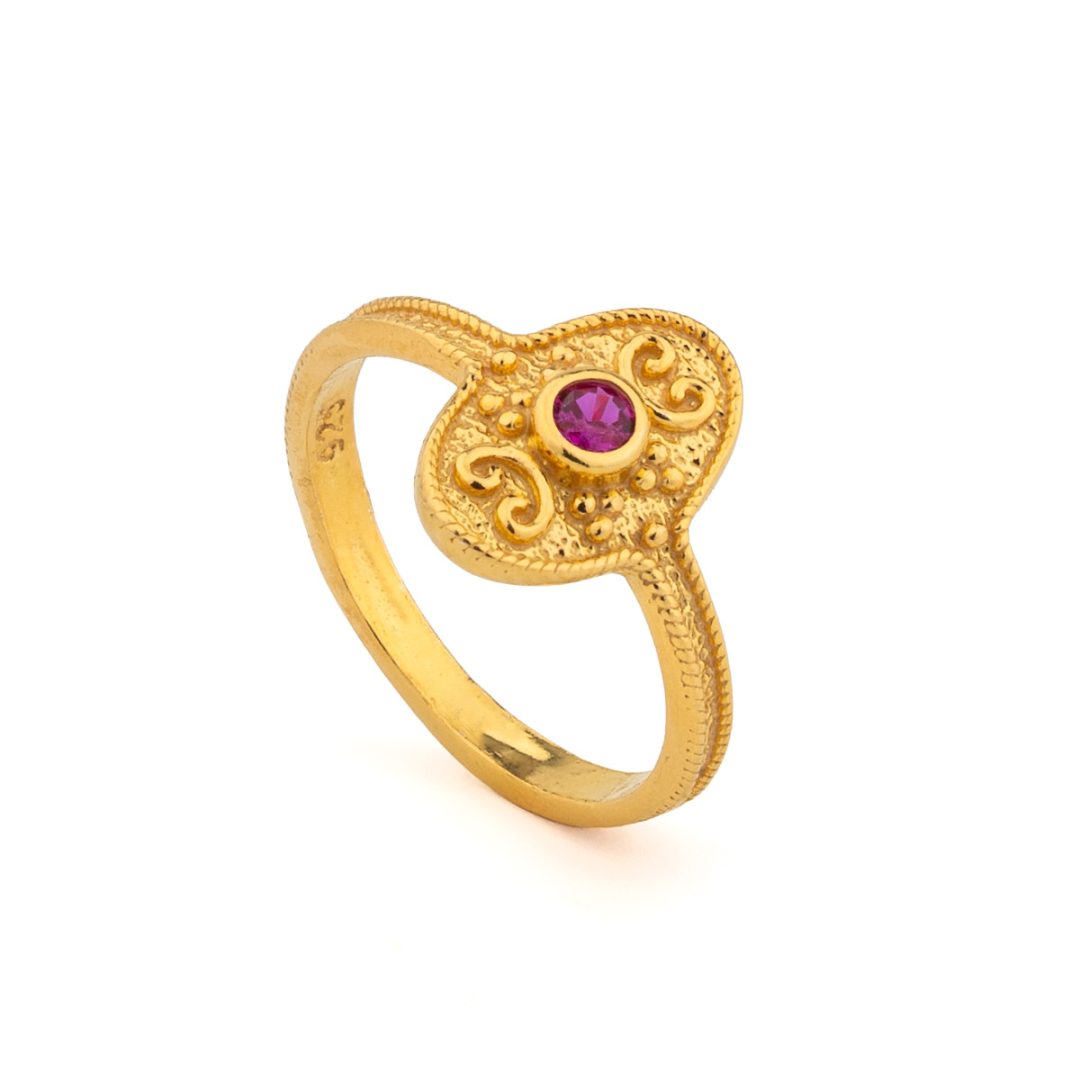Byzantine Oval Ring in 925 Sterling Silver Gold-Plated with Round Zircon