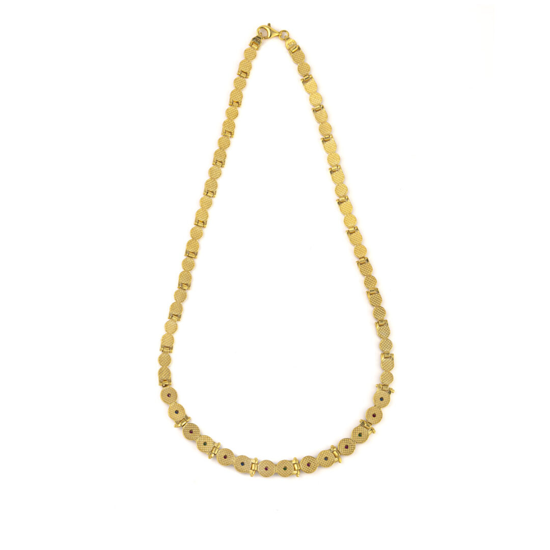 Byzantine Round Necklace with Zircon – Sterling Silver Gold Plated