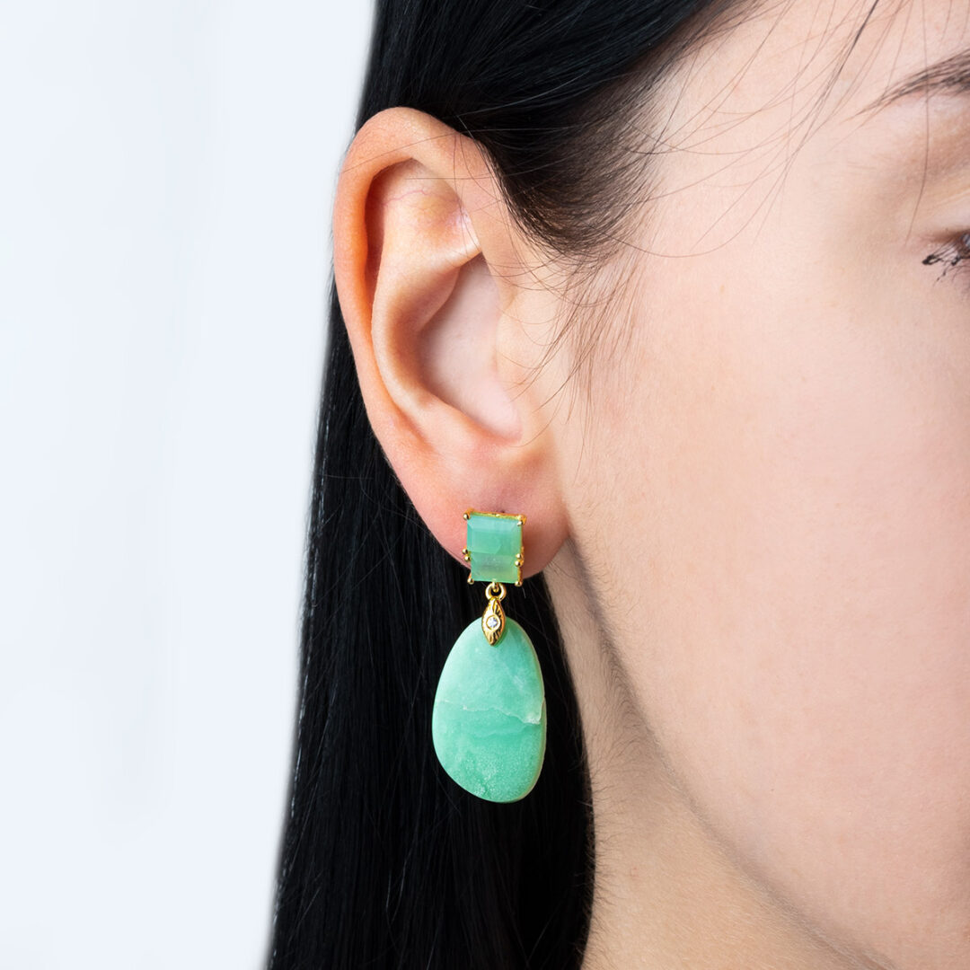 Chrysoprase Dangle Earrings – 925 Sterling Silver and Gold Plated