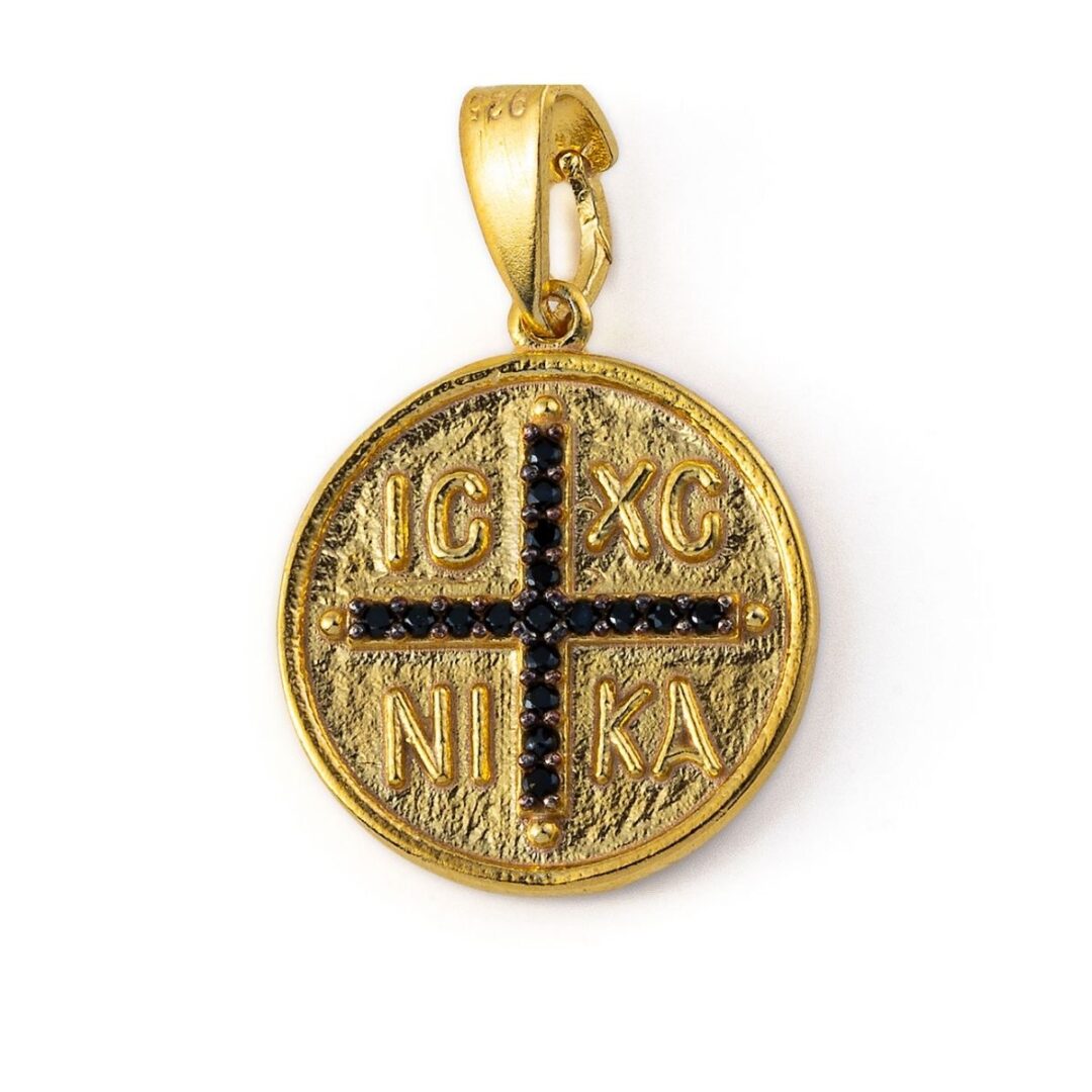 A handmade pendant that depicts Christogram with the initials IC XC NIKA (Jesus Christ conquers).
