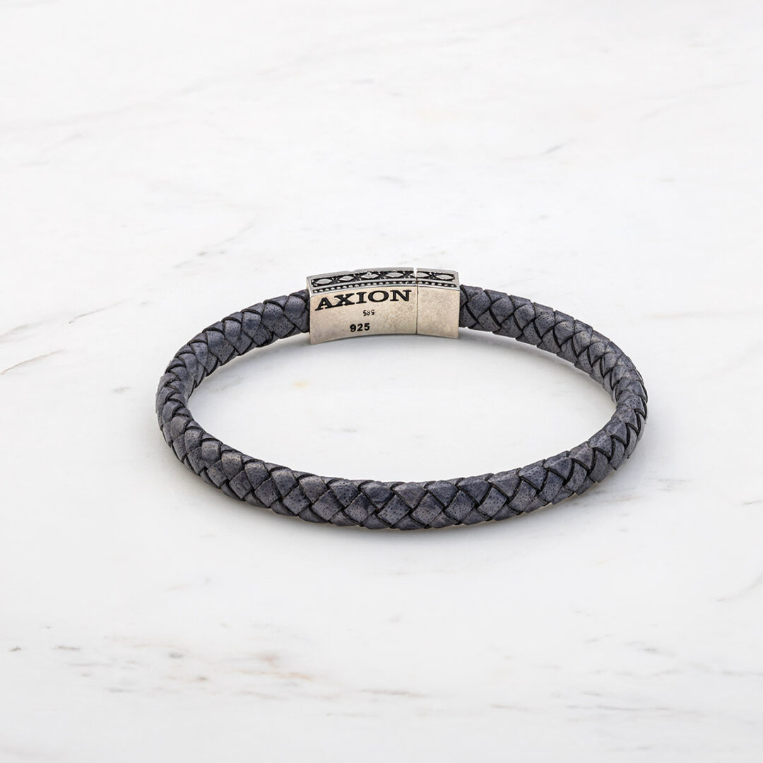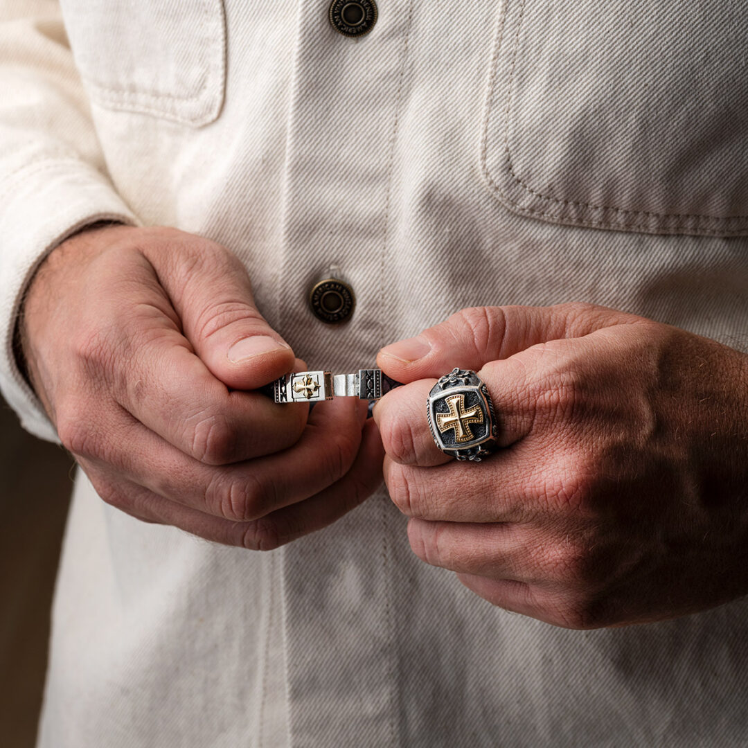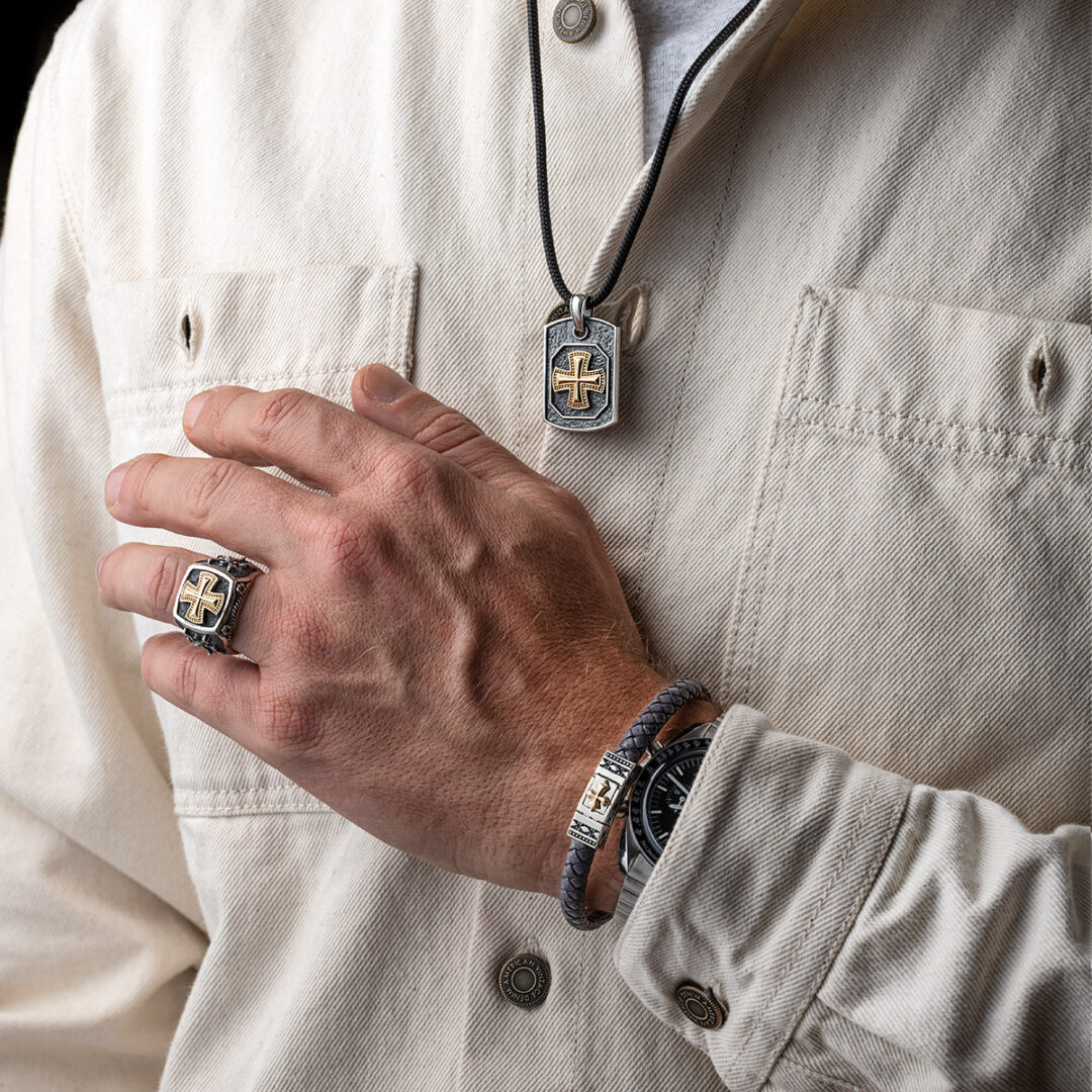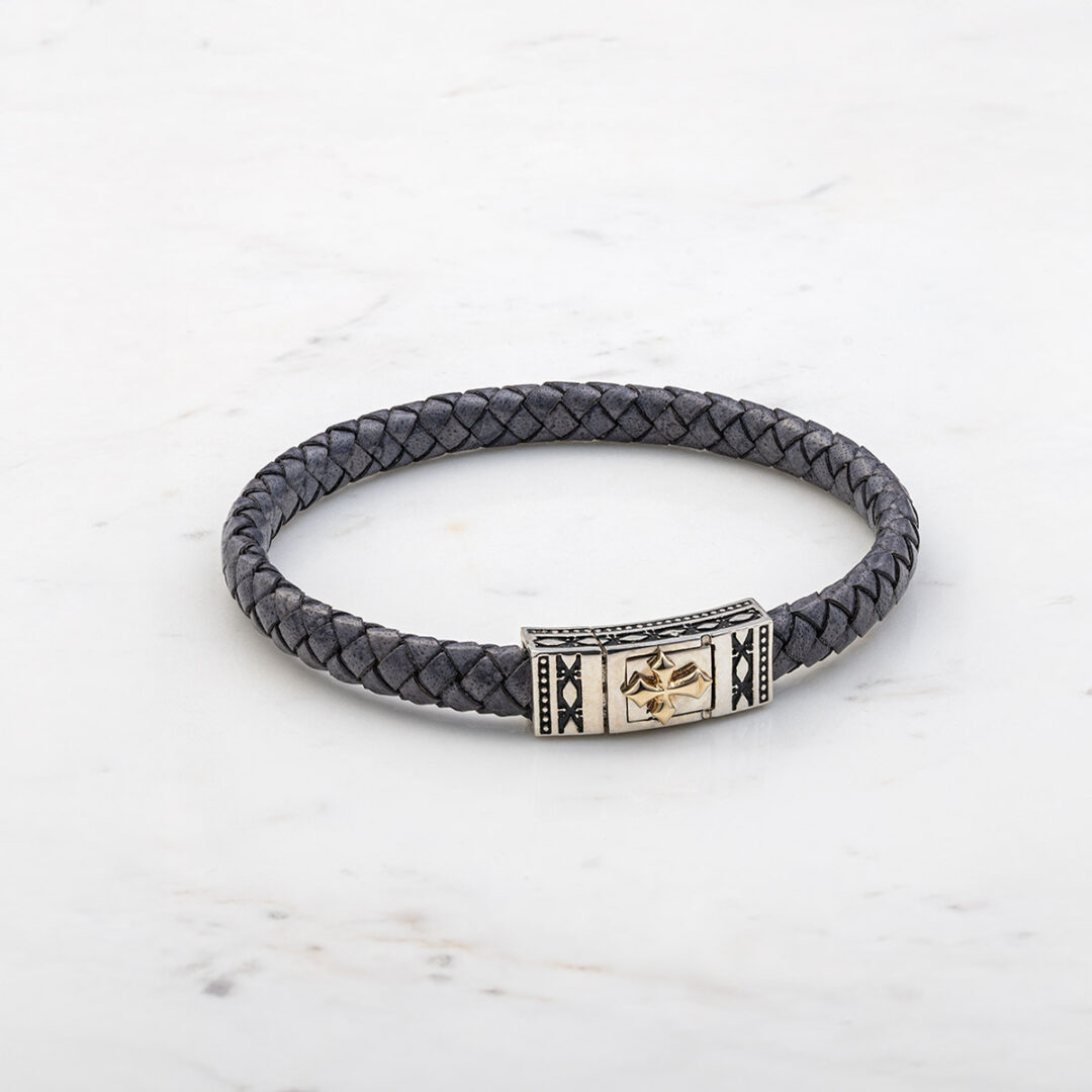 Cross Grey Leather Bracelet – Sterling Silver & K14 Gold