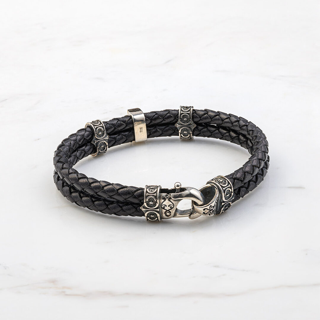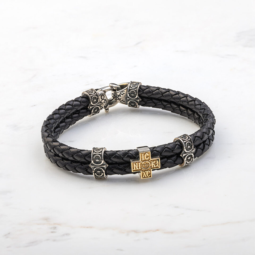 Cross Leather Bracelet – Sterling Silver & K14 Gold