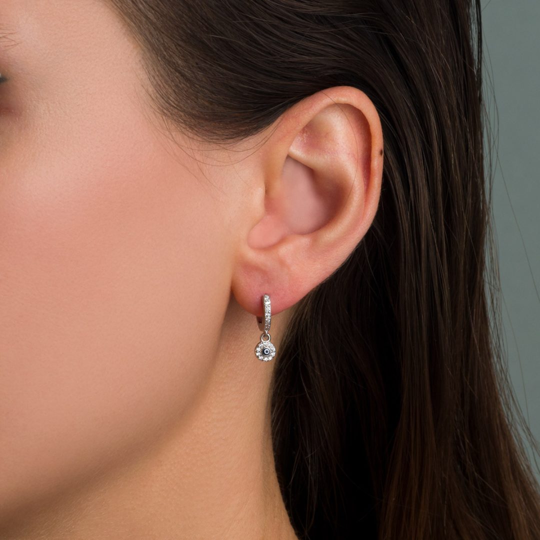 Evil Eye Charm Hoop Earrings in 925 Sterling Silver with Zircon