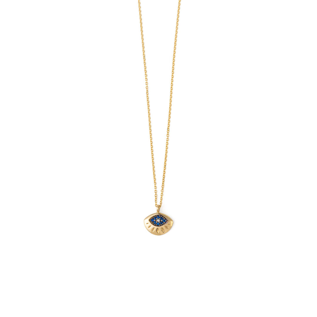 Evil Eye Necklace with Blue Zircon – 14K Gold