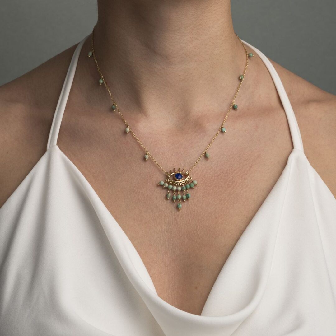 Evil Eye Vintage Necklace with Amazonite & Lapis Lazuli