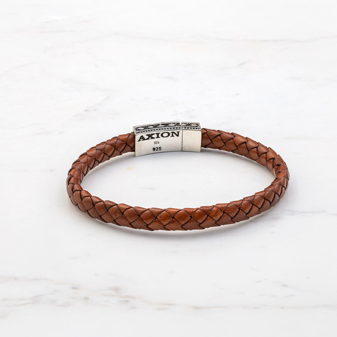 Fleur De-lis Brown Leather Bracelet – Sterling Silver & K14 Gold