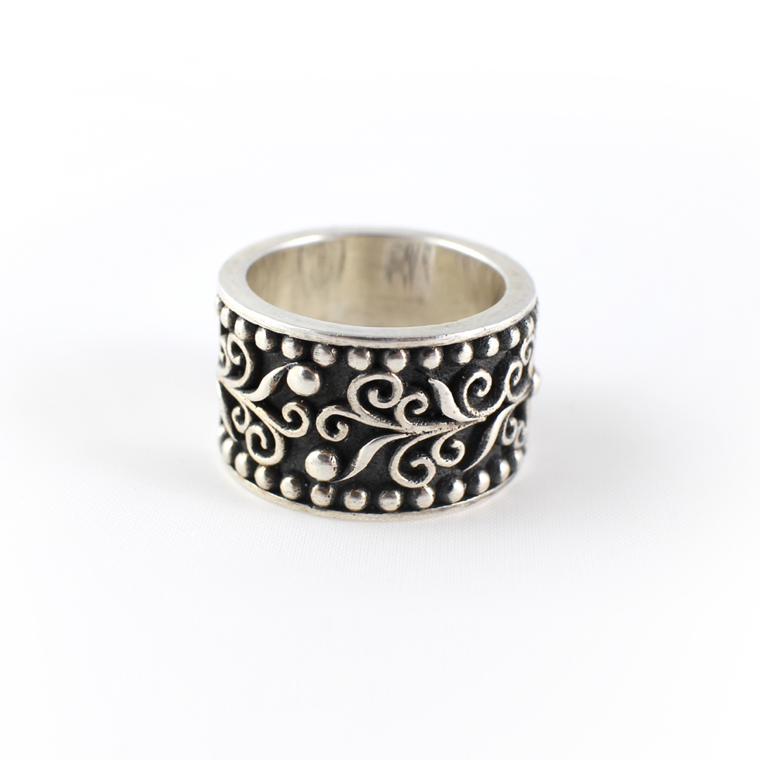 Ring with granulation technique and oxidation.