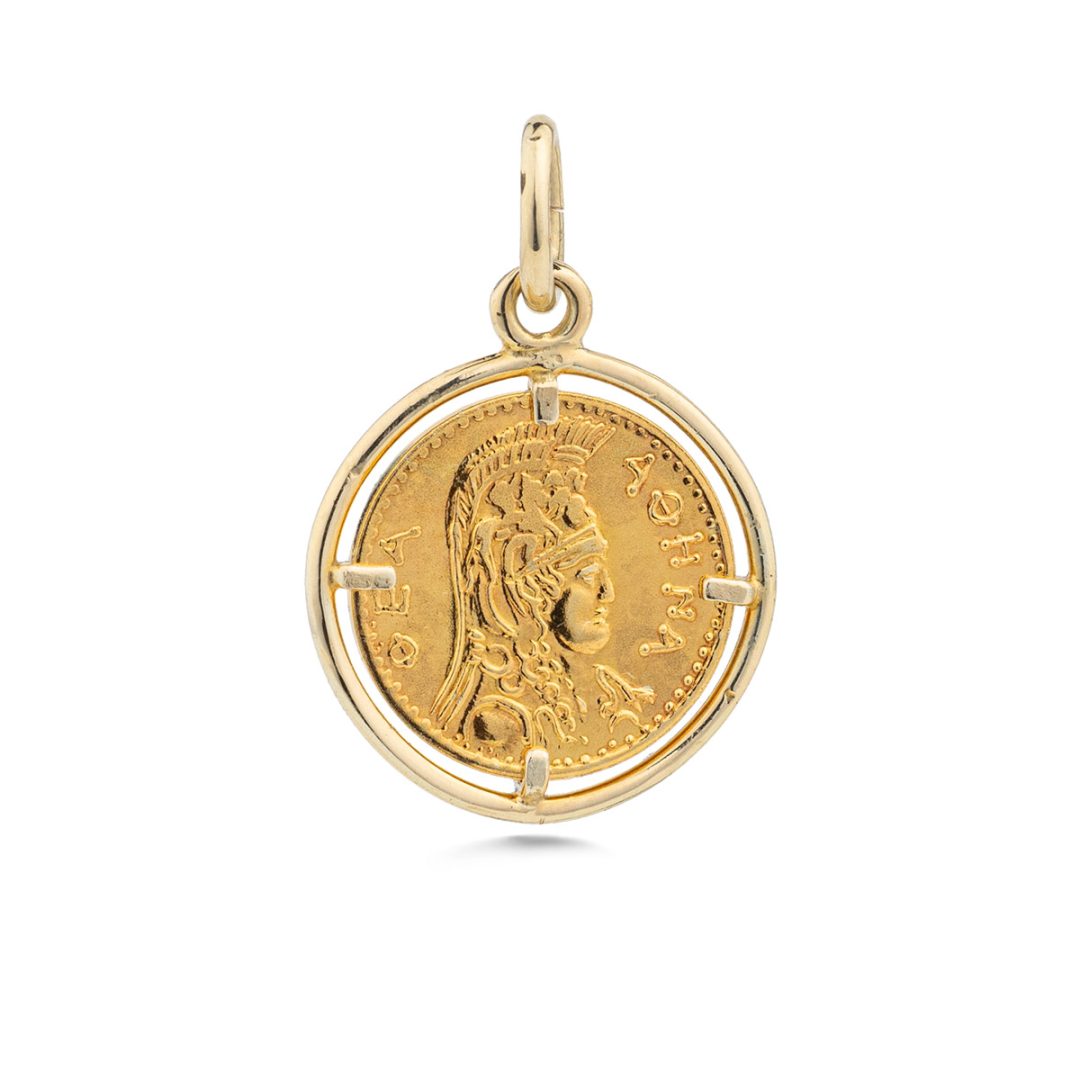 Goddess Athena and Owl Coin Pendant – 14K Gold
