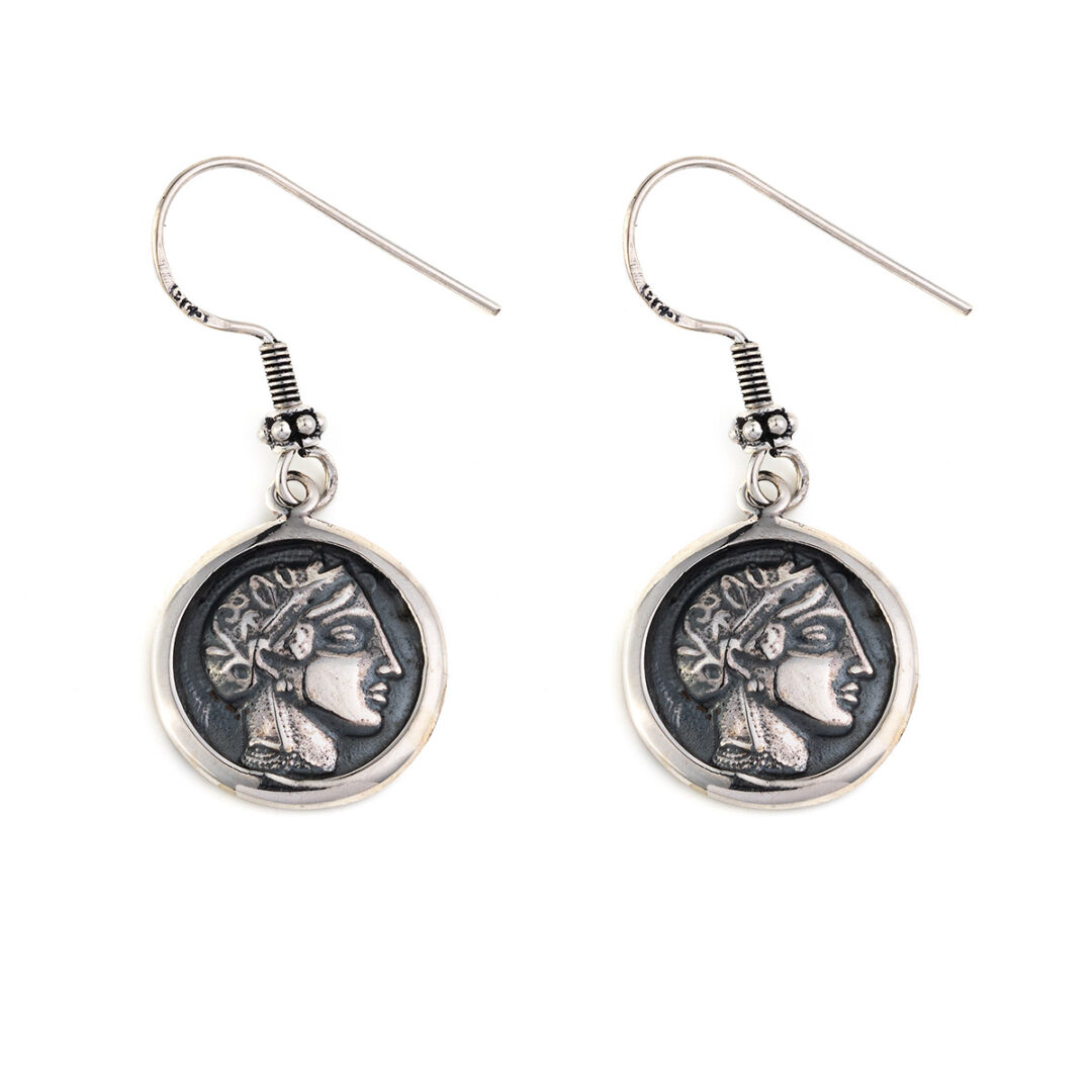 Goddess Athena Coin Earrings – 925 Sterling Silver