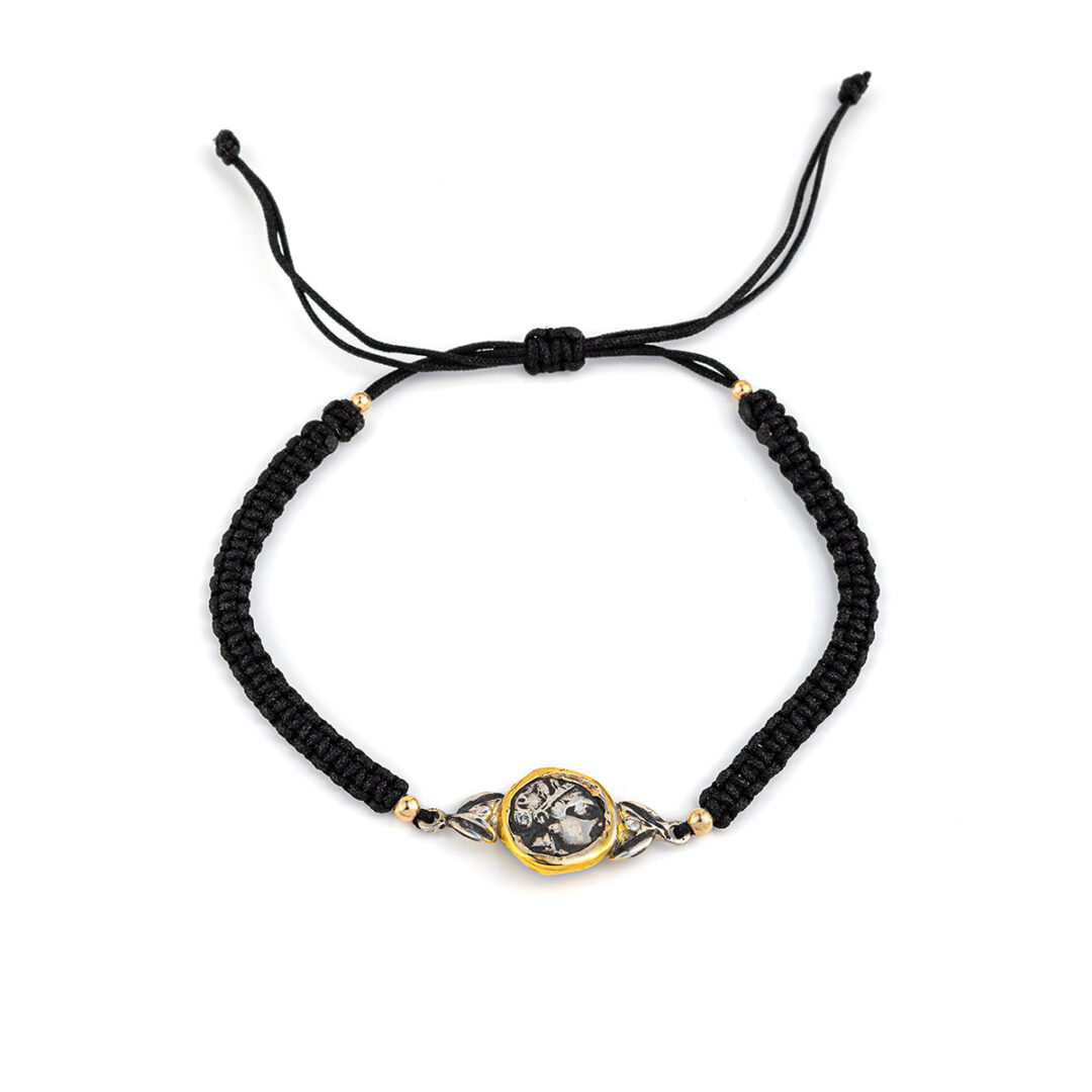 Goddess Athena Coin Macrame Bracelet – 14K Gold and 925 Sterling Silver