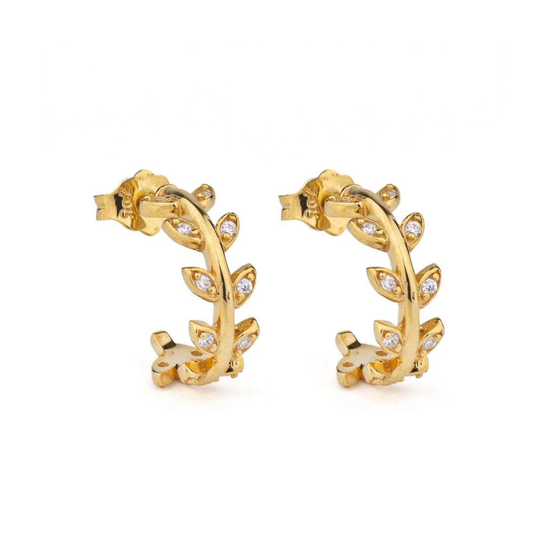 Handmade in Greece, this striking pair of statement earrings features delicately sculpted leaf motifs, beautifully set in 14K yellow gold.