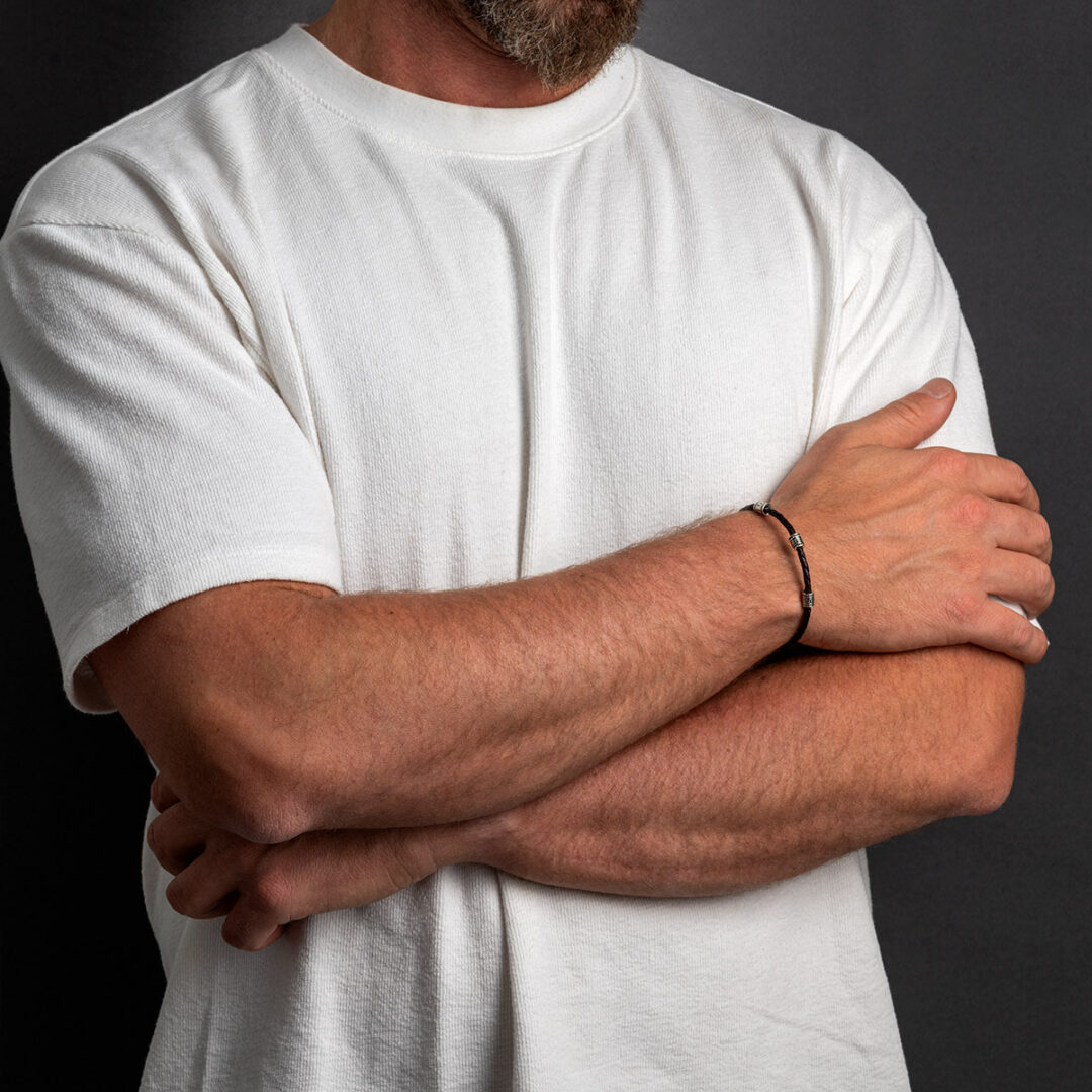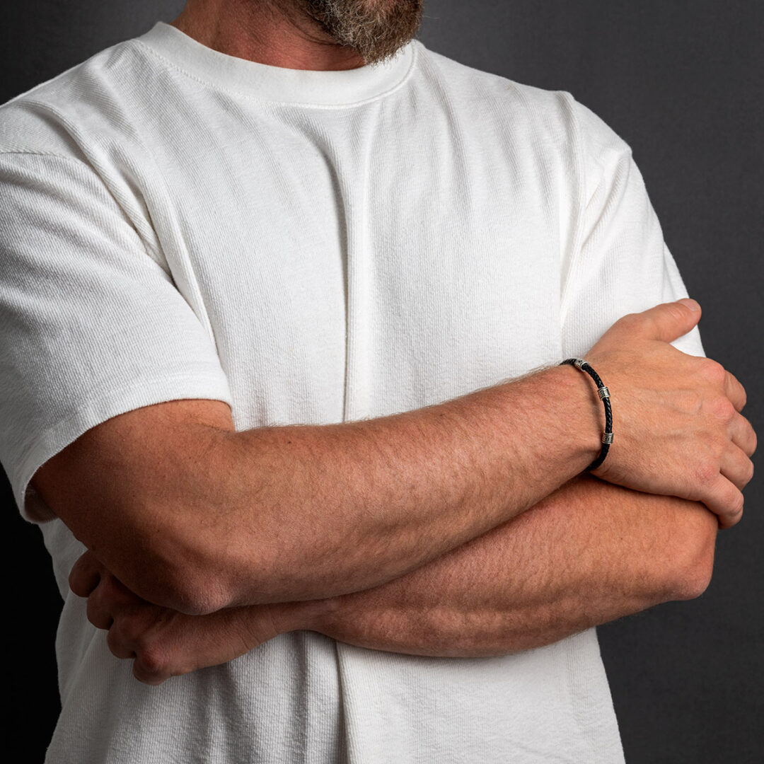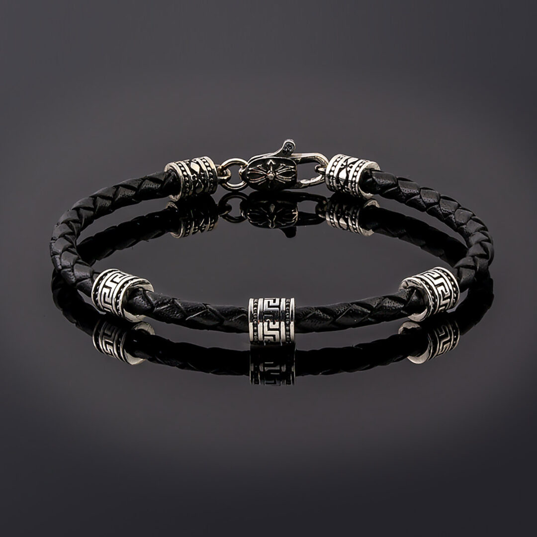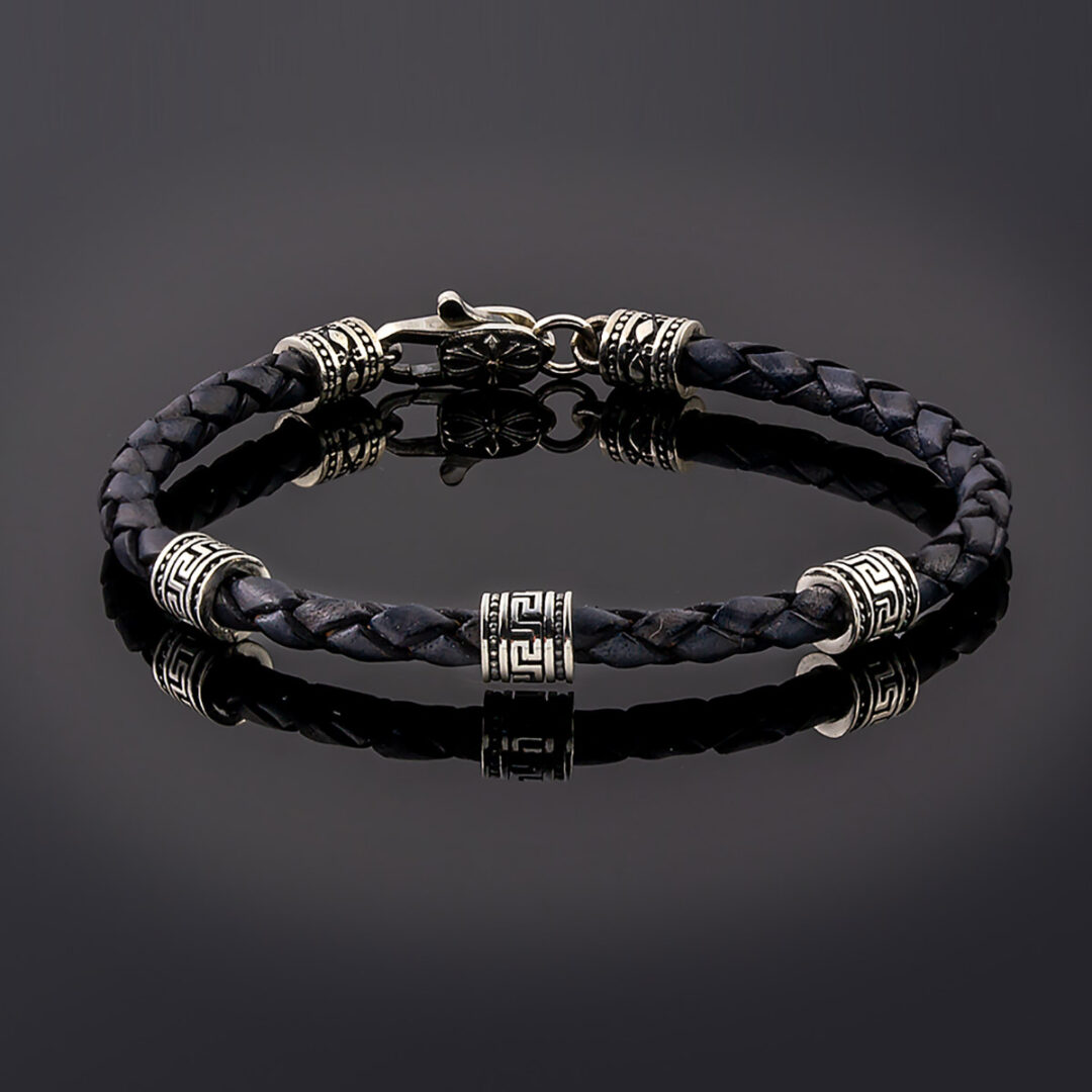 Greek Key Bracelet – Sterling Silver and Braided Genuine Leather