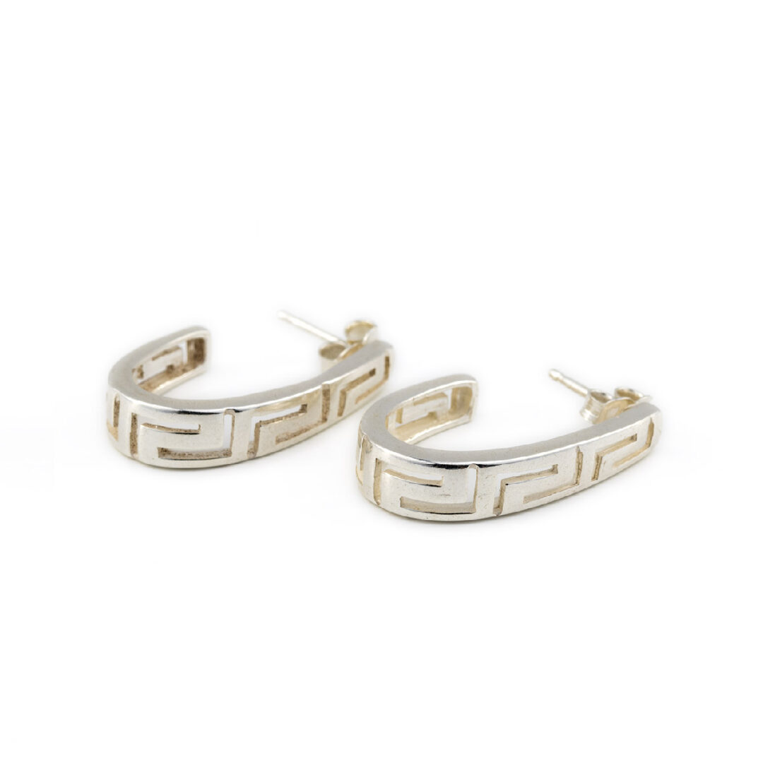 Greek Key Crescent Moon Earrings – 925 Sterling Silver