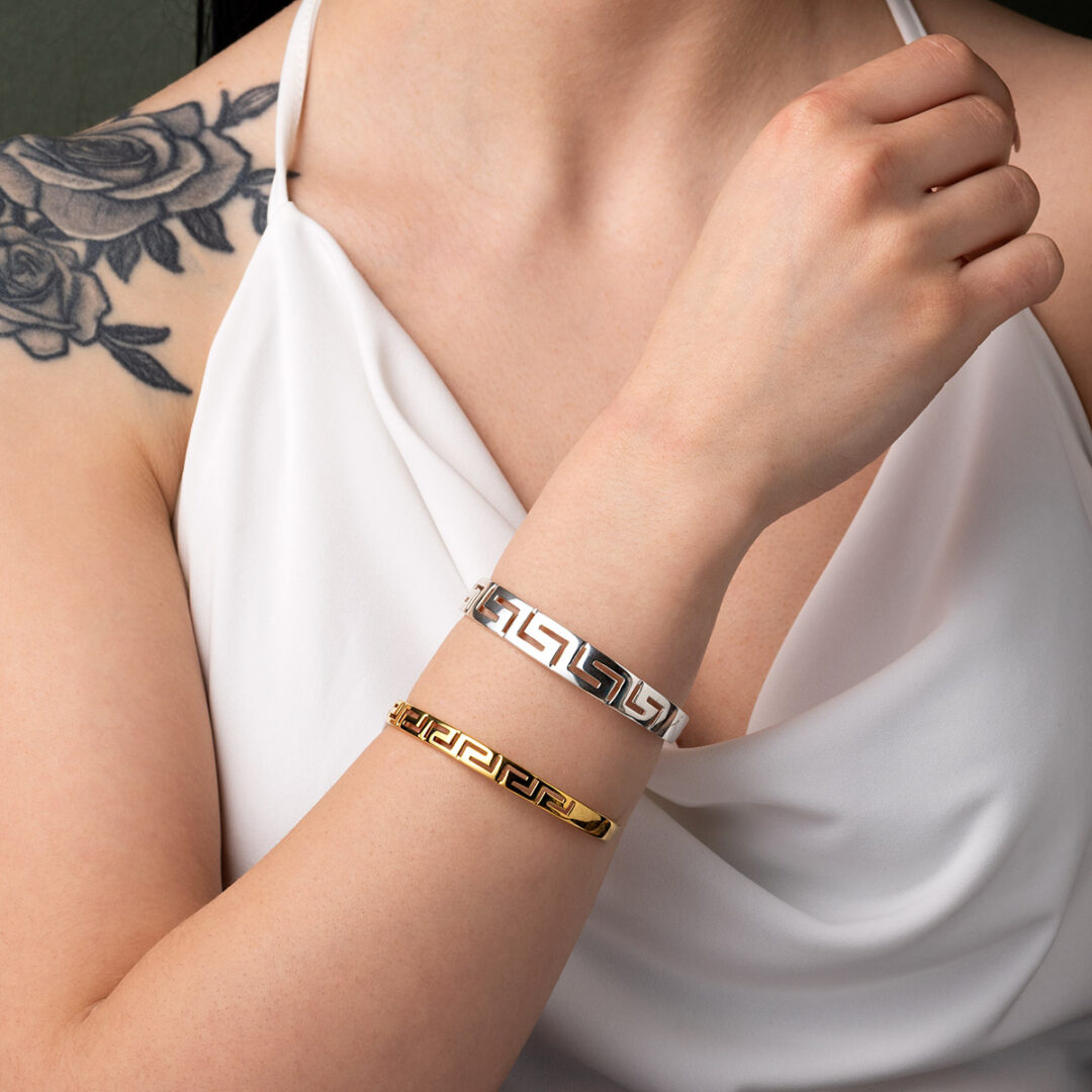 Greek Key Cuff Bracelet – Sterling Silver and Gold Plated