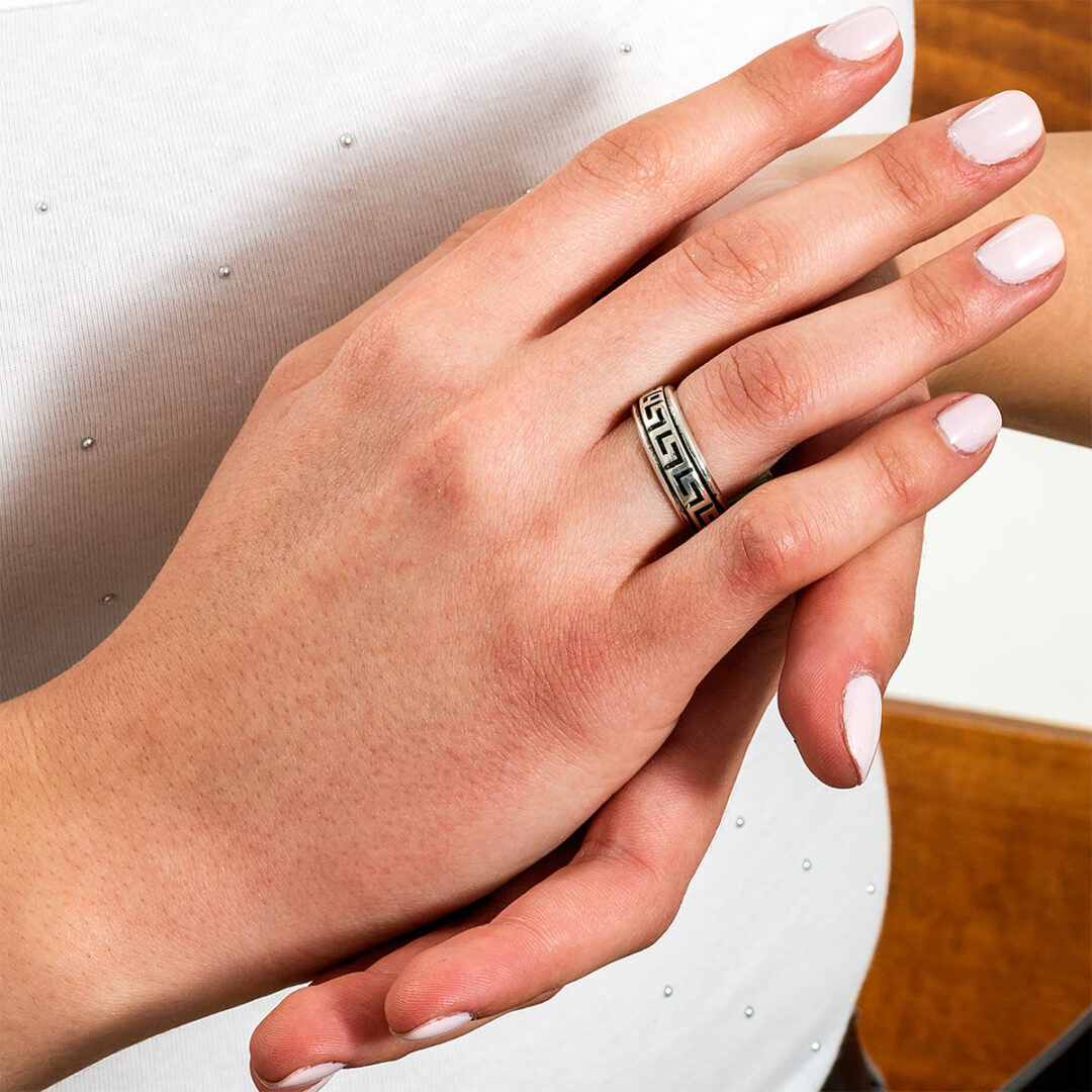 Greek Key Meander Band Spinner Ring in Sterling Silver