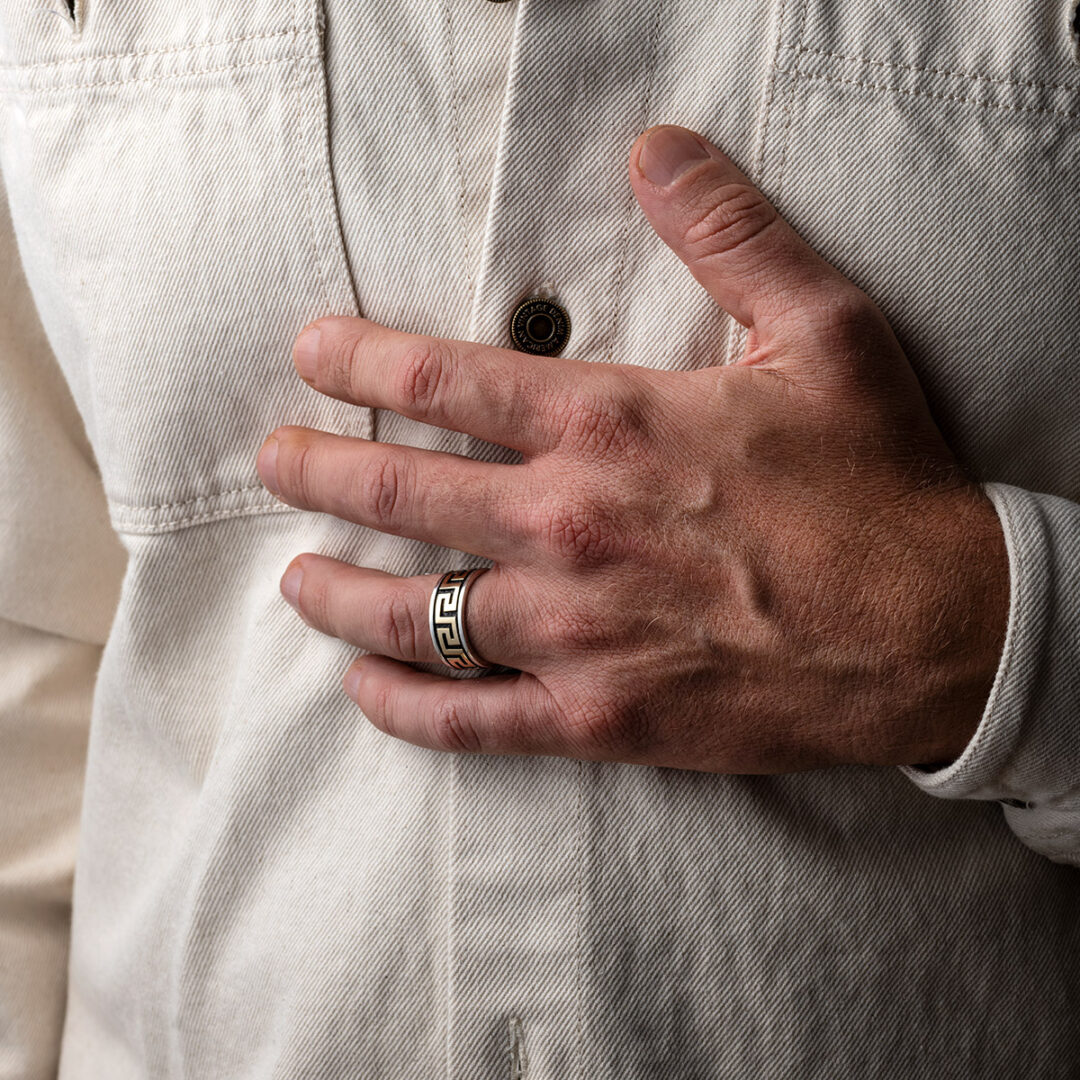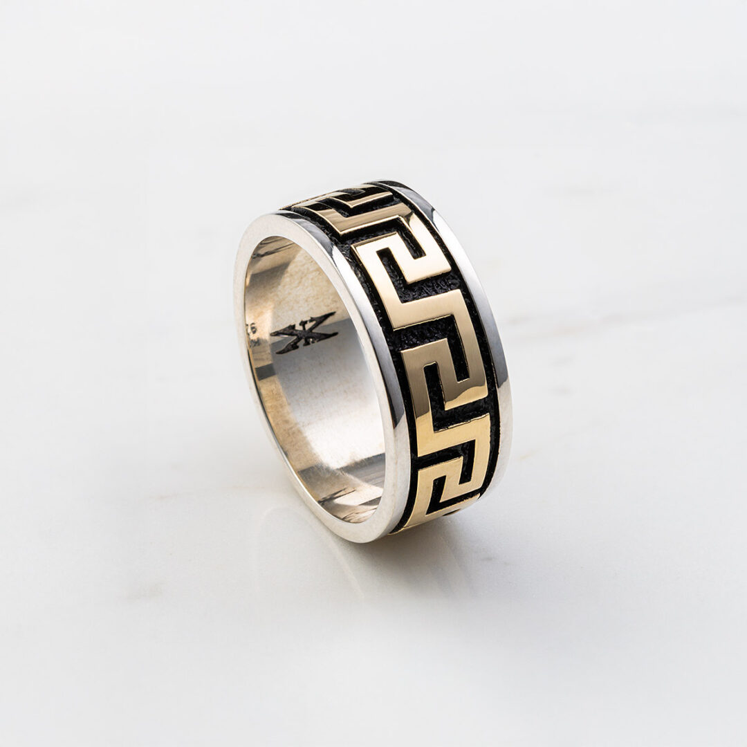 Greek Key Ring – 14k Solid Gold & Sterling Silver