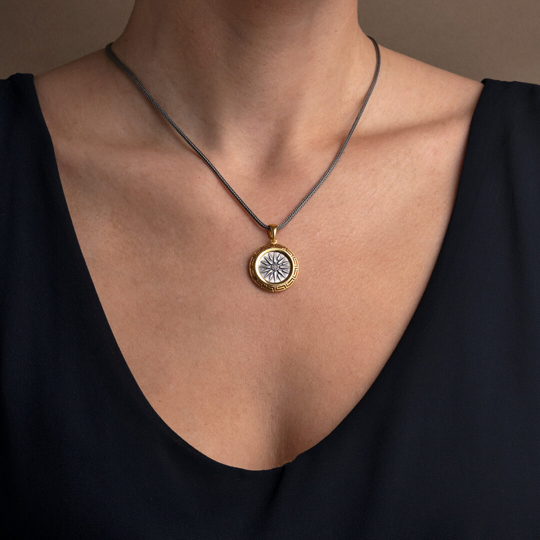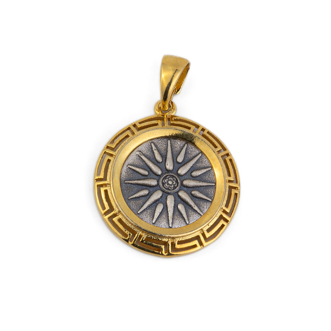 Greek Key Vergina Sun Pendant – Sterling Silver and Gold Plated