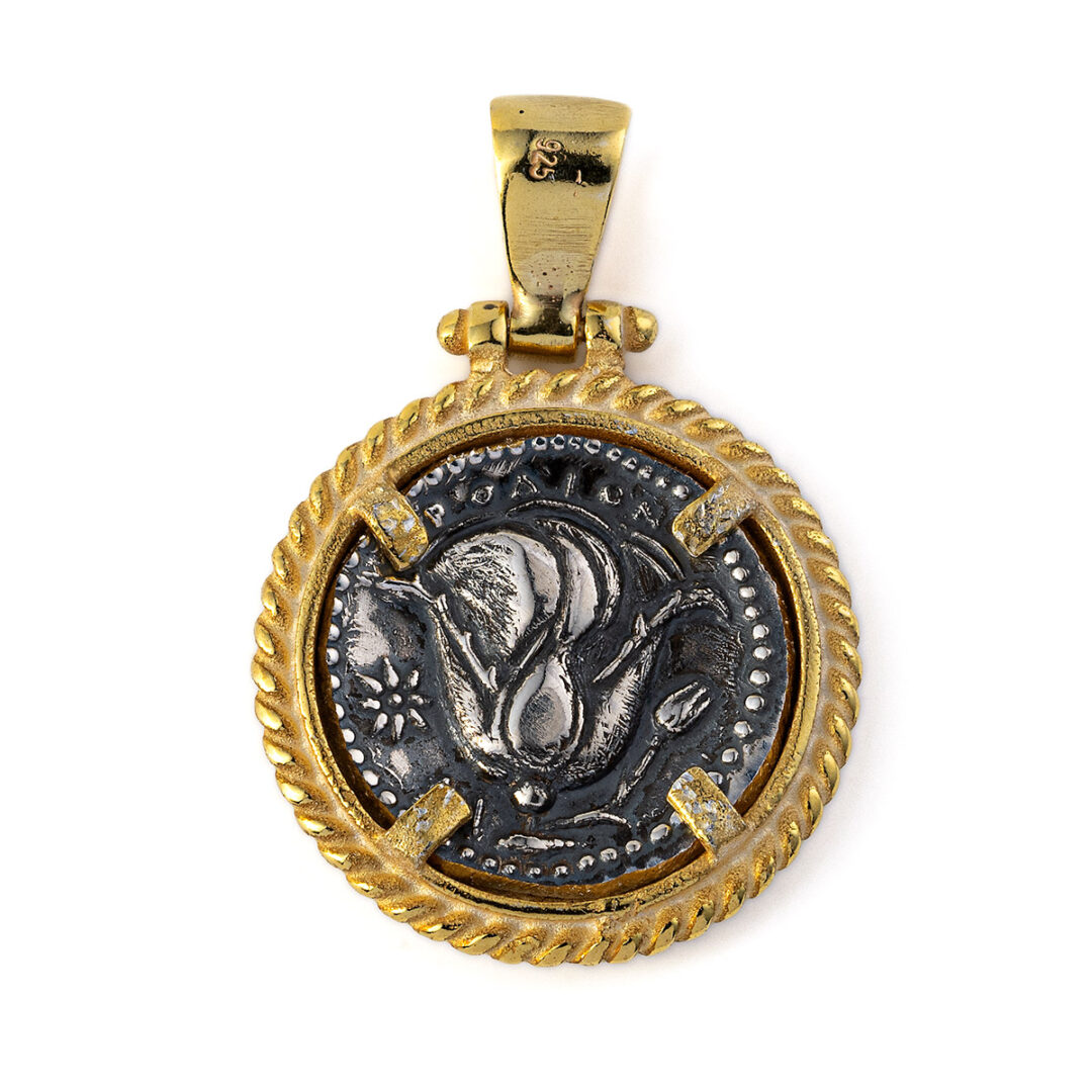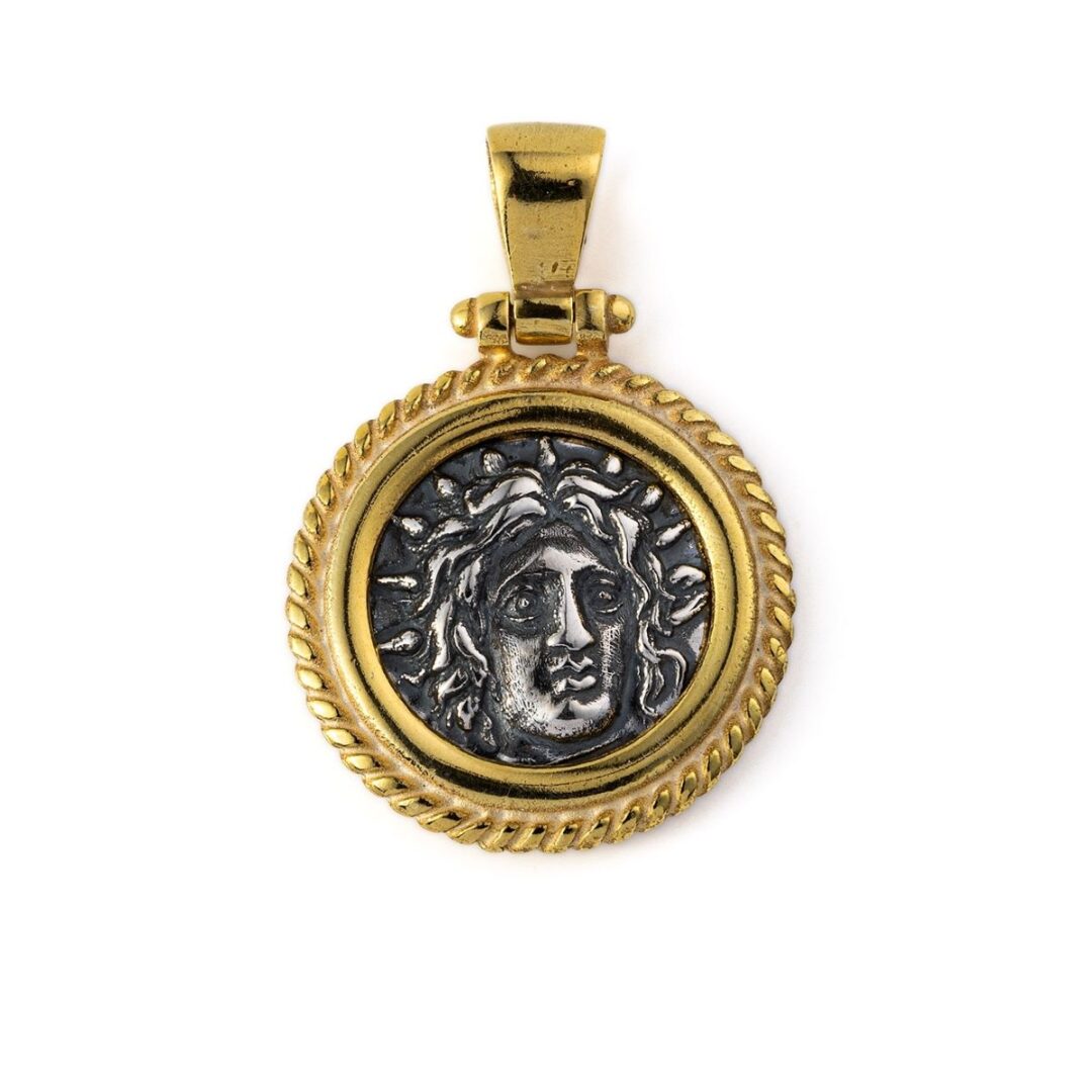 Handmade pendant, inspired by an ancient Greek tetradrachm coin of Rhodes.