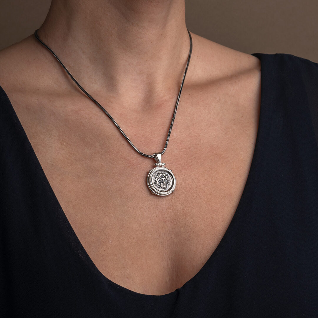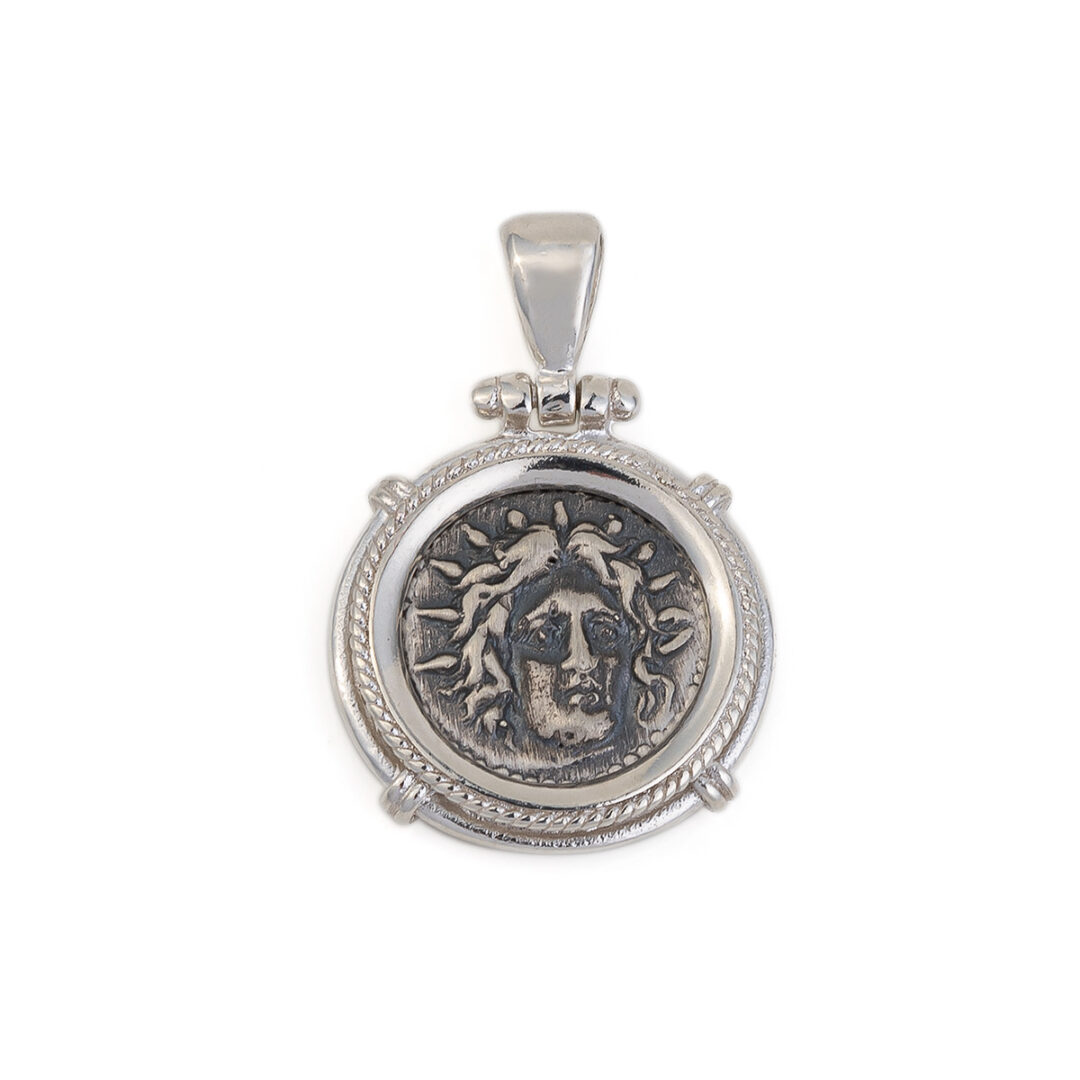 Handmade pendant, inspired by an ancient Greek tetradrachm coin of Rhodes.