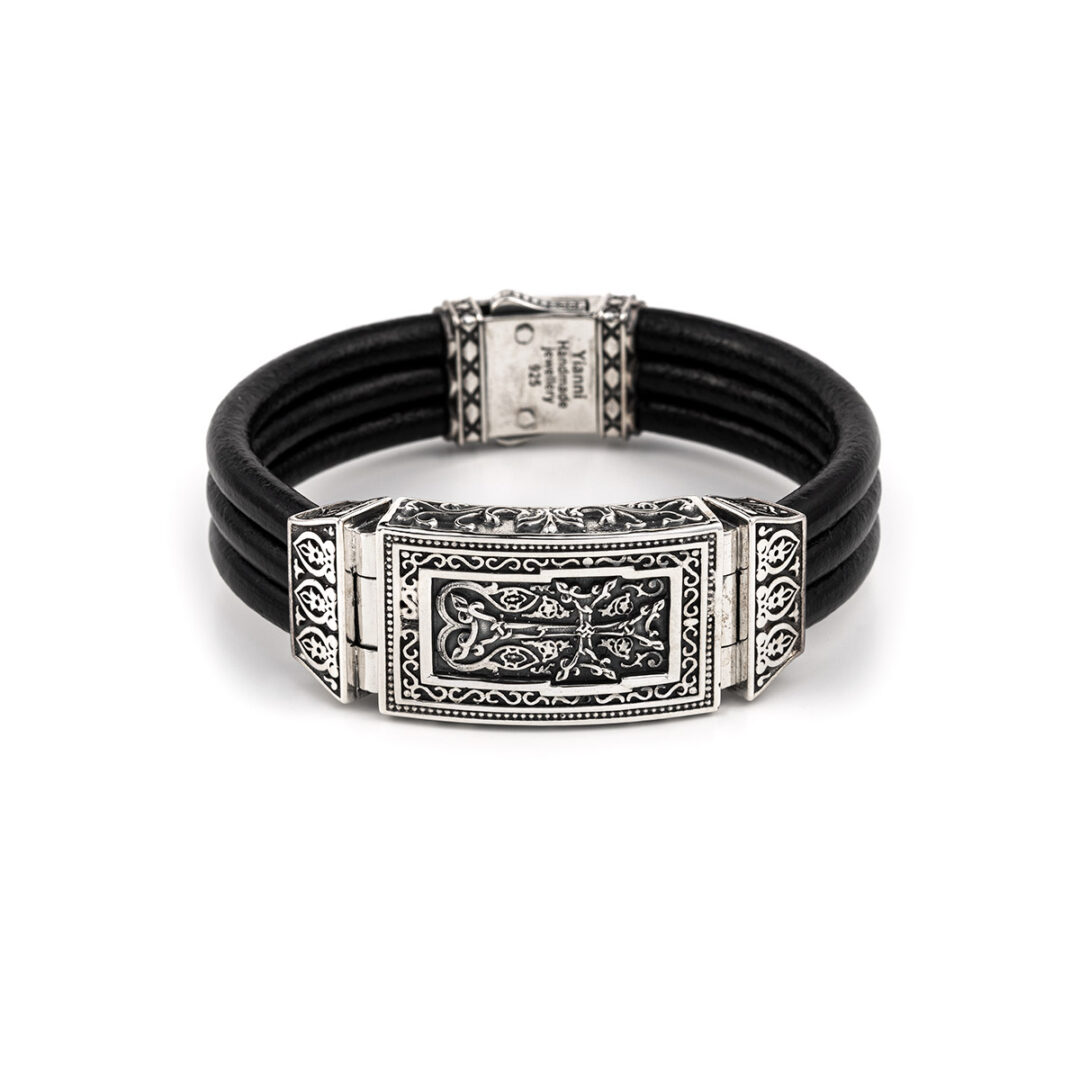 Ivy Cross Leather Bracelet – Sterling Silver Yianni Jewelry