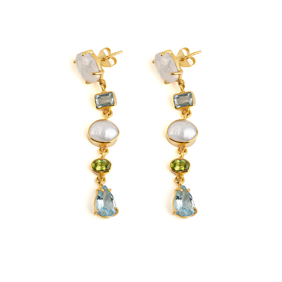 Multistone Dangle Earrings – 925 Sterling Silver and Gold Plated